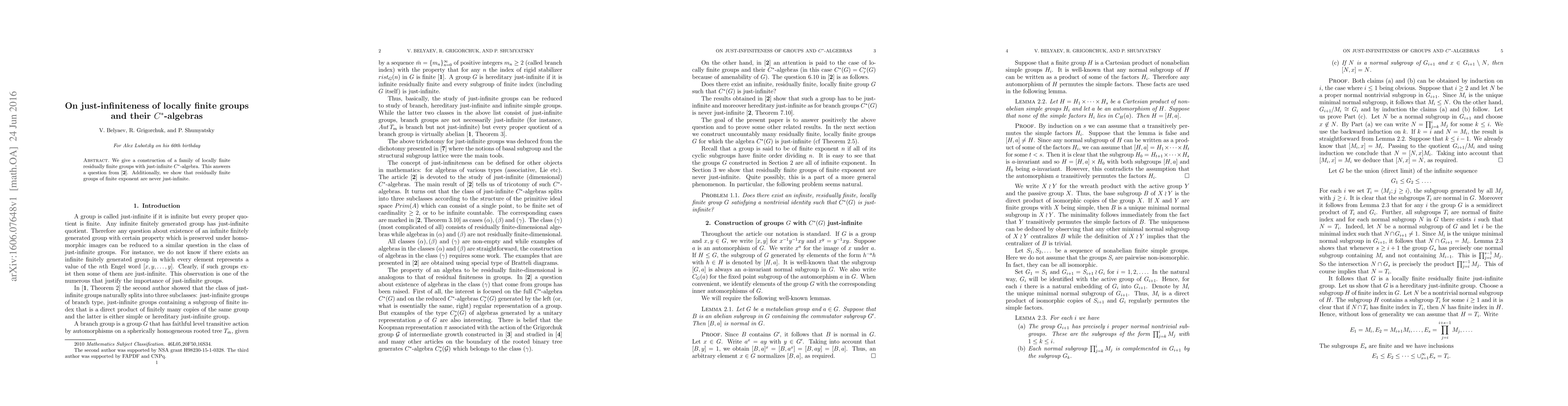 Summary: This paper constructs locally finite residually finite groups with just-infinite C*-algebras, addressing a question from a referenced work, and proves that residually finite groups of finite exponent cannot be just-infinite.