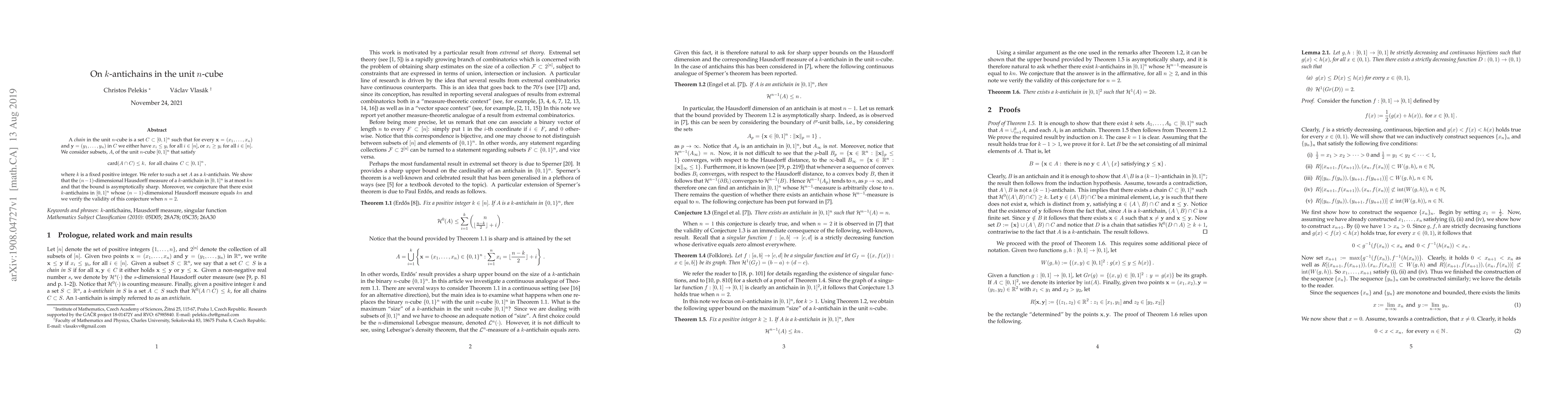 This paper studies $k$-antichains in the unit $n$-cube, sets that intersect any chain in at most $k$ points. It proves that the $(n-1)$-dimensional Hausdorff measure of such a $k$-antichain is at most $kn$, with this bound being asymptotically tight.