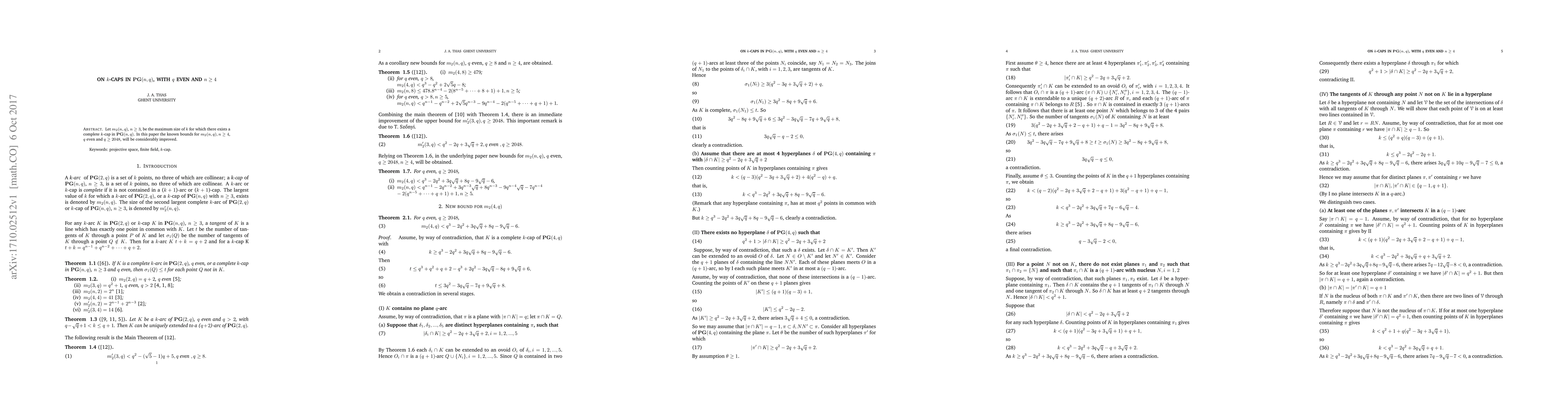 This paper improves known bounds for the maximum size of k-caps in projective geometries PG(n, q) when n ≥ 4 and q is even, specifically focusing on cases where q ≥ 2048. The study aims to enhance the understanding of complete k-caps within these geometries.