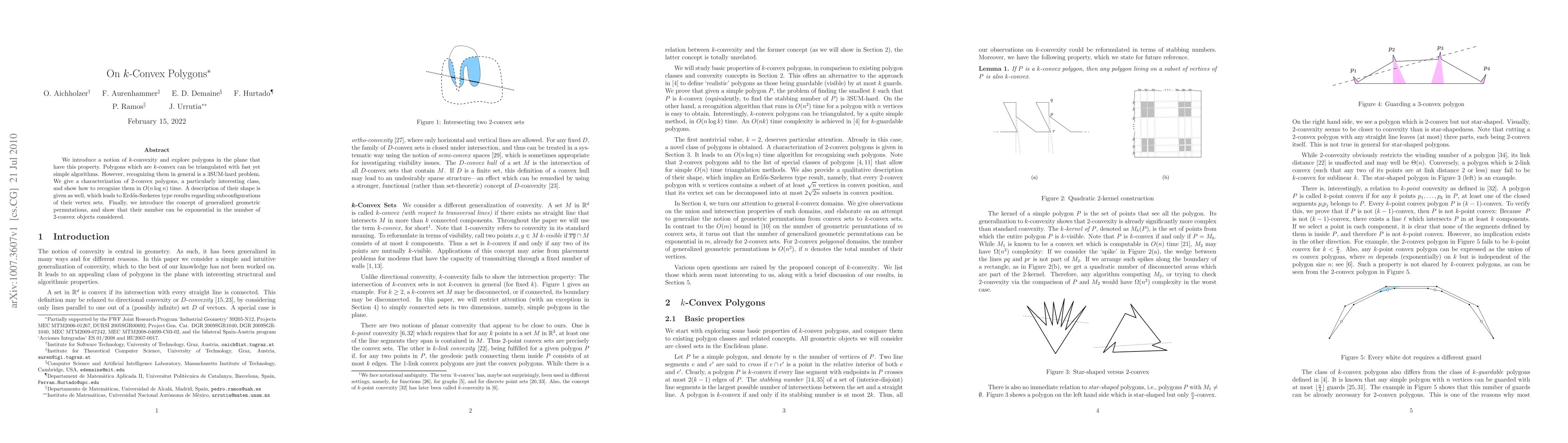 This paper introduces $k$-convex polygons, focusing on their triangulation and recognition. It characterizes $2$-convex polygons, showing they can be recognized in $O(n \log n)$ time, and discusses their geometric properties and permutations.