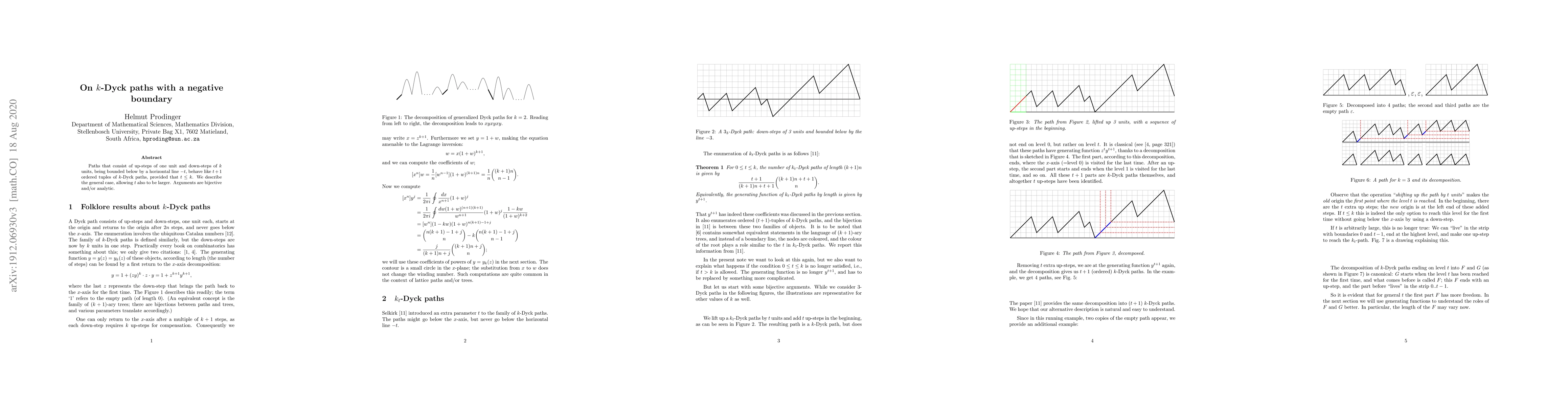 Paths that consist of up-steps of one unit and down-steps of $k$ units, being bounded below by a horizontal line $-t$, behave like $t+1$ ordered tuples of $k$-Dyck paths, provided that $t\le k$. We describe the general case, allowing $t$ also to be larger. Arguments are bijective and/or analytic.