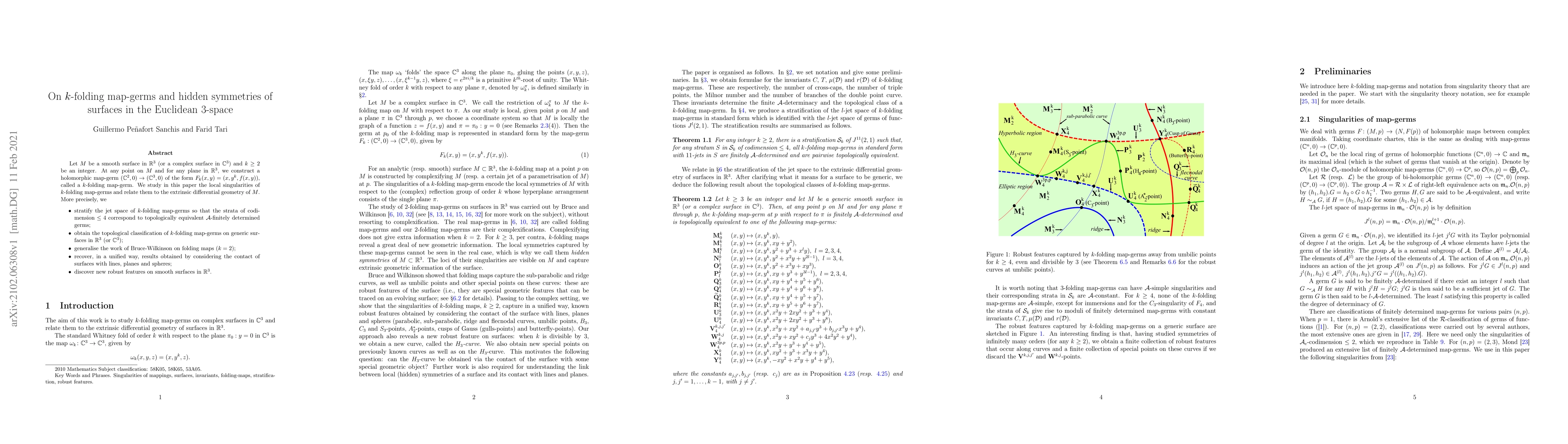 Let $M$ be a smooth surface in $\mathbb R^3$ (or a complex surface in $\mathbb C^3$) and $k\geq 2$ be an integer. At any point on $M$ and for any plane in $\mathbb R^3$, we construct a holomorphic map-germ $(\mathbb C^2,0)\to(\mathbb C^3,0)$ of the form $F_k(x,y)= (x,y^k,f(x,y))$, called a $k$-folding map-germ. We study in this paper the local singularities of $k$-folding map-germs and relate them to the extrinsic differential geometry of $M$. More precisely, we (1) stratify the jet space of $k$-folding map-germs so that the strata of codimension $\le 4$ correspond to topologically equivalent $\mathcal A$-finitely determined germs; (2) obtain the topological classification of $k$-folding map-germs on generic surfaces in $\mathbb R^3$ (or $\mathbb C^3$); (3) generalise the work of Bruce-Wilkinson on folding maps ($k=2$); (4) recover, in a unified way, results obtained by considering the contact of surfaces with lines, planes and spheres; and (5) discover new robust features on smooth surfaces in $\mathbb R^3$.