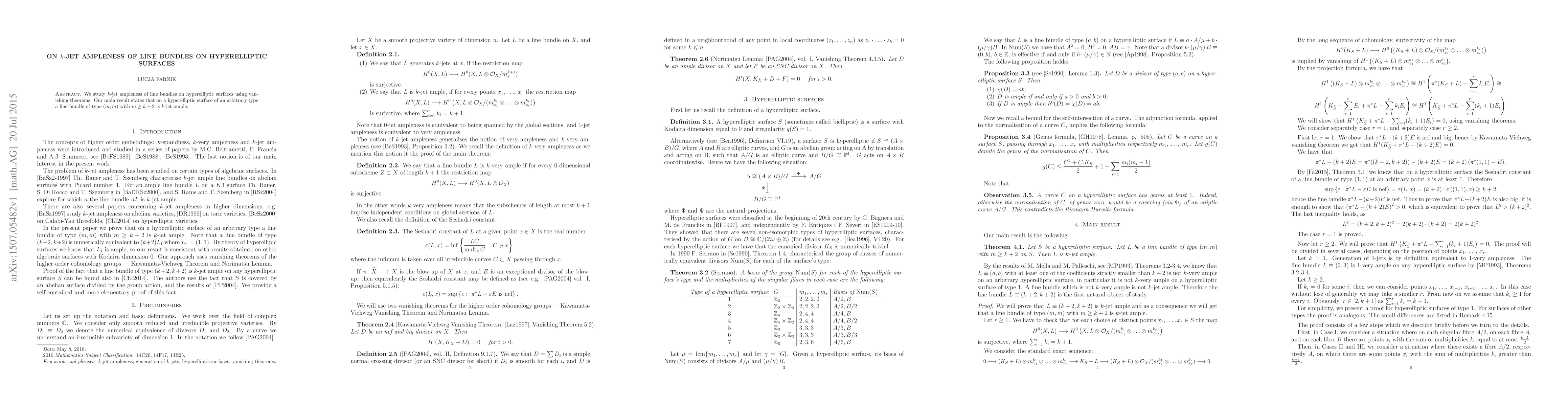 This paper investigates the k-jet ampleness of line bundles on hyperelliptic surfaces by leveraging vanishing theorems. The key finding is that for any hyperelliptic surface, a line bundle of type (m,m) with m ≥ k+2 is k-jet ample.