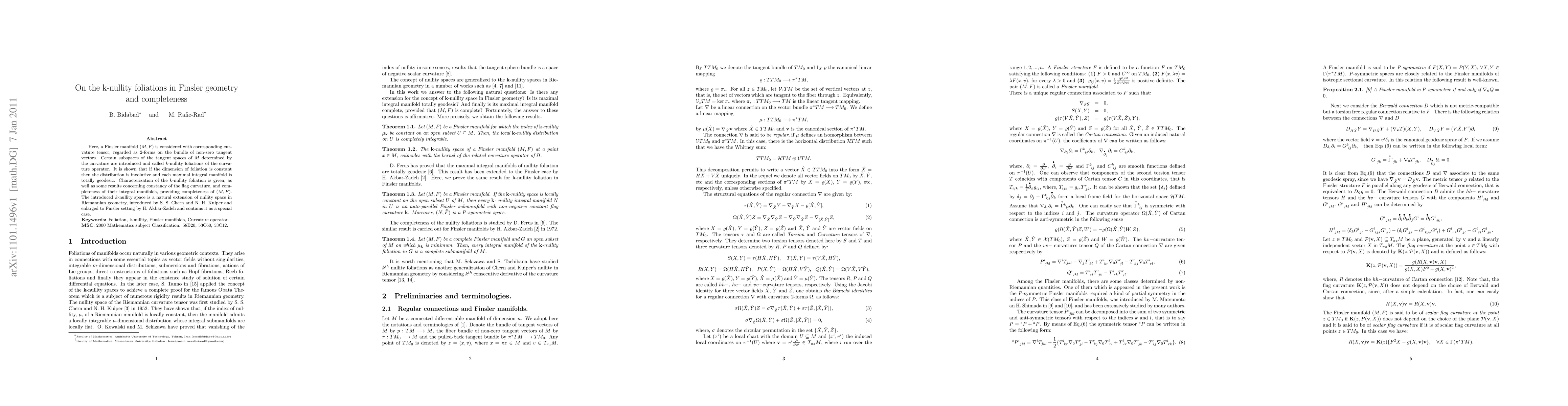 This paper explores k-nullity foliations in Finsler geometry, showing that constant-dimensional foliations are involutive and lead to totally geodesic maximal integral manifolds. It also characterizes these foliations and discusses their role in determining the completeness of the Finsler manifold.