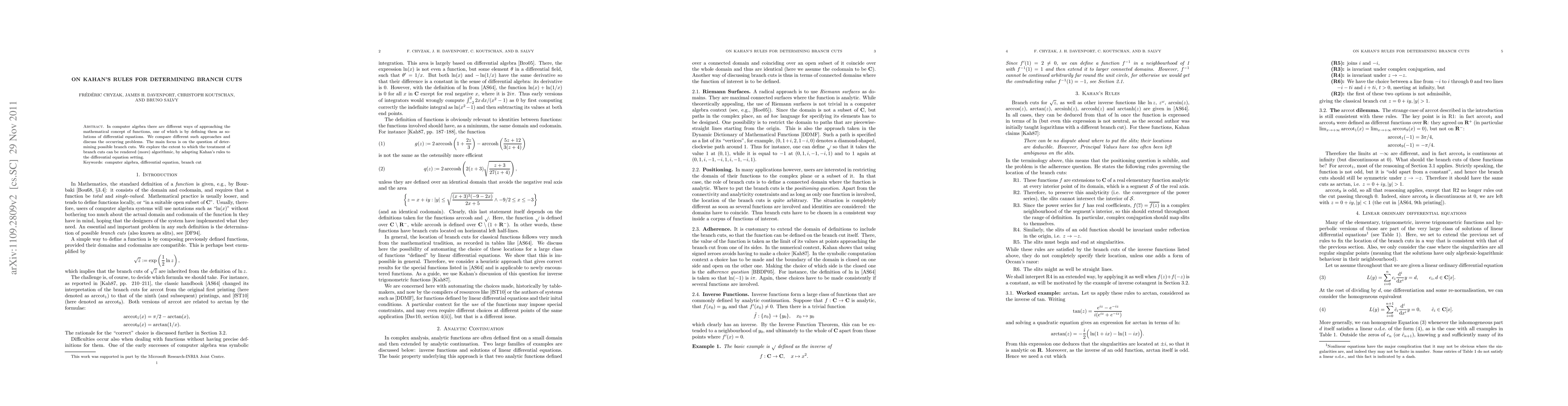 This paper explores how to determine branch cuts for functions defined as solutions of differential equations using Kahan's rules, aiming to make this process more algorithmic.