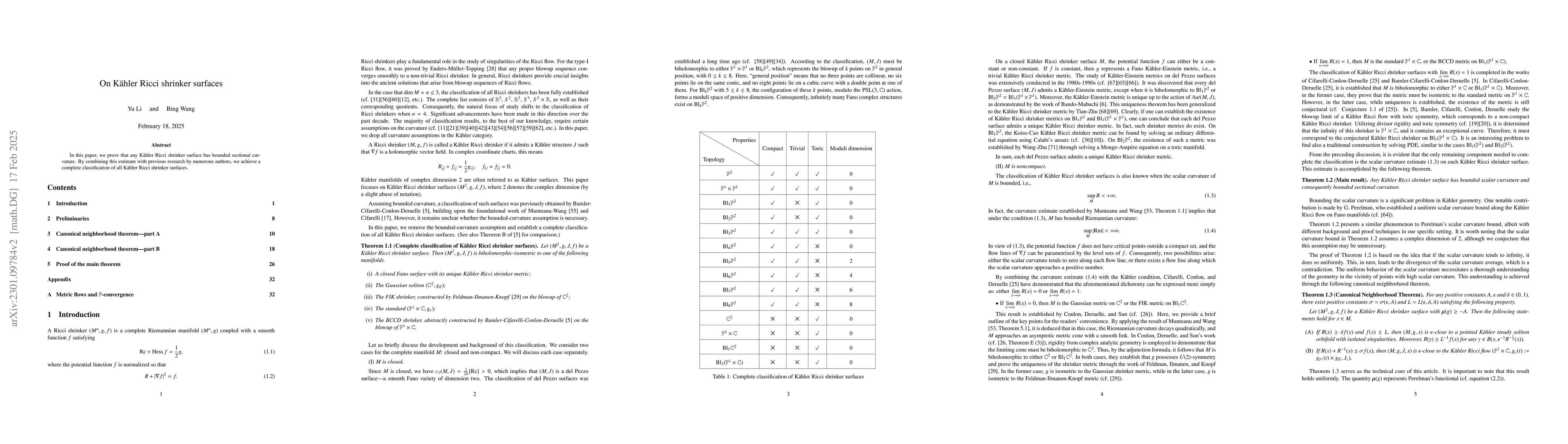 This paper proves that any Kähler Ricci shrinker surface has bounded sectional curvature, and uses this result along with previous work to classify all such surfaces completely.
