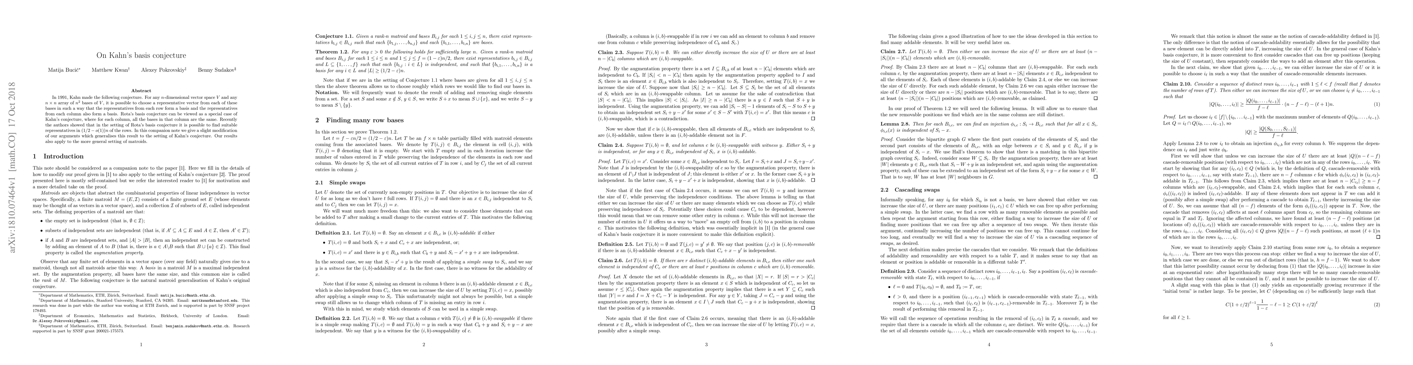 In 1991, Kahn made the following conjecture. For any $n$-dimensional vector space $V$ and any $n\times n$ array of $n^2$ bases of $V$, it is possible to choose a representative vector from each of these bases in such a way that the representatives from each row form a basis and the representatives from each column also form a basis. Rota's basis conjecture can be viewed as a special case of Kahn's conjecture, where for each column, all the bases in that column are the same. Recently the authors showed that in the setting of Rota's basis conjecture it is possible to find suitable representatives in $\left(1/2-o\left(1\right)\right)n$ of the rows. In this companion note we give a slight modification of our arguments which generalises this result to the setting of Kahn's conjecture. Our results also apply to the more general setting of matroids.