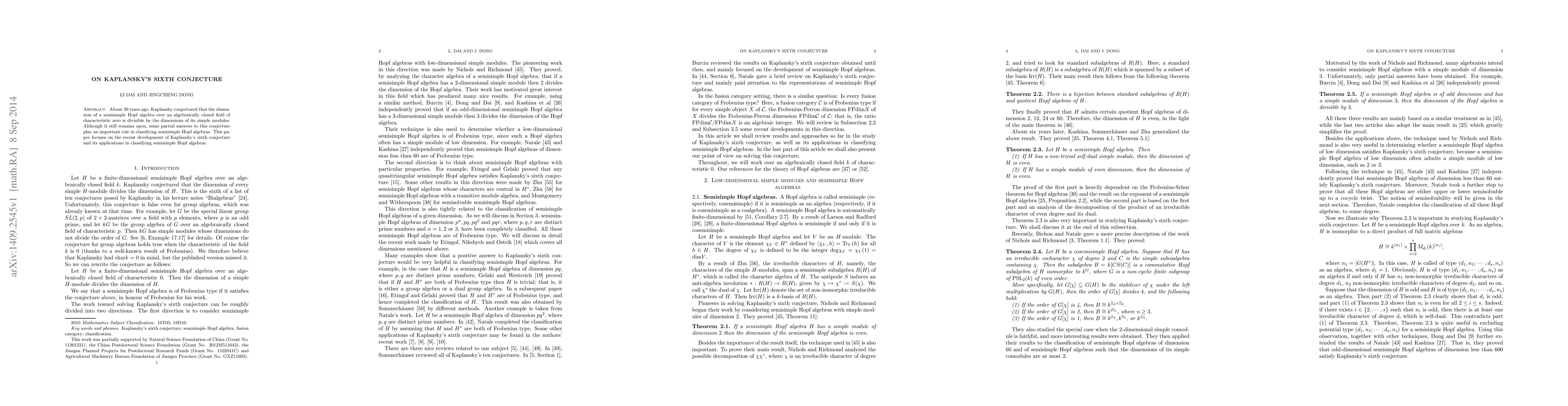 About $39$ years ago, Kaplansky conjectured that the dimension of a semisimple Hopf algebra over an algebraically closed field of characteristic zero is divisible by the dimensions of its simple modules. Although it still remains open, some partial answers to this conjecture play an important role in classifying semisimple Hopf algebras. This paper focuses on the recent development of Kaplansky's sixth conjecture and its applications in classifying semisimple Hopf algebras.