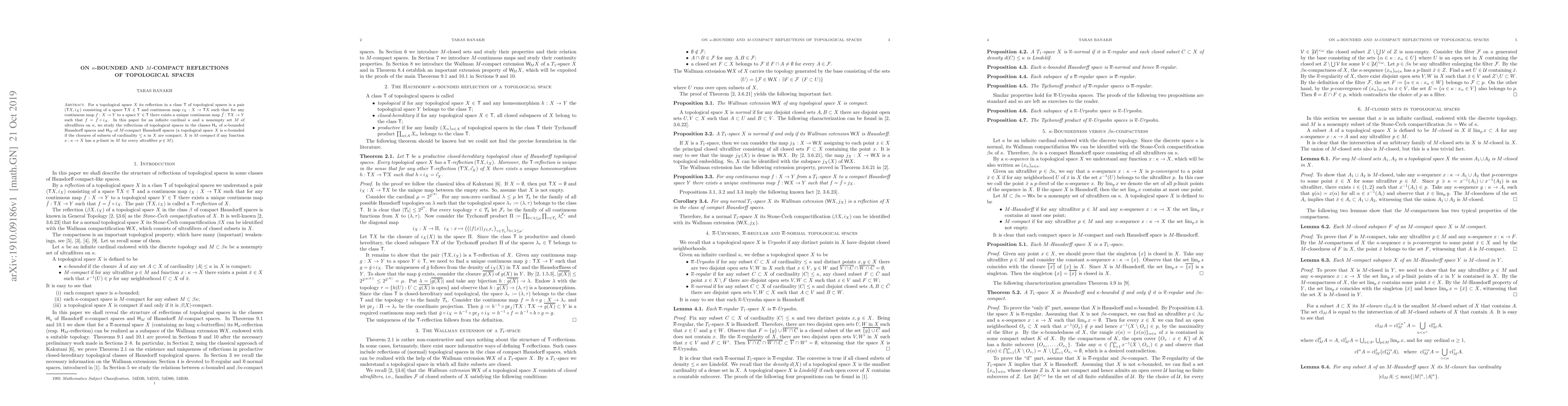 For a topological space $X$ its reflection in a class $\mathsf T$ of topological spaces is a pair $(\mathsf T X,i_X)$ consisting of a space $\mathsf T X\in\mathsf T$ and continuous map $i_X:X\to \mathsf T X$ such that for any continuous map $f:X\to Y$ to a space $Y\in\mathsf T$ there exists a unique continuous map $\bar f:\mathsf T X\to Y$ such that $f=\bar f\circ i_X$. In this paper for an infinite cardinal $\kappa$ and a nonempty set $M$ of ultrafilters on $\kappa$, we study the reflections of topological spaces in the classes $\mathsf H_\kappa$ of $\kappa$-bounded Hausdorff spaces and $\mathsf H_M$ of $M$-compact Hausdorff spaces (a topological space $X$ is $\kappa$-bounded if the closures of subsets of cardinality $\le\kappa$ in $X$ are compact; $X$ is $M$-compact if any function $x:\kappa\to X$ has a $p$-limit in $M$ for every ultrafilter $p\in M$).