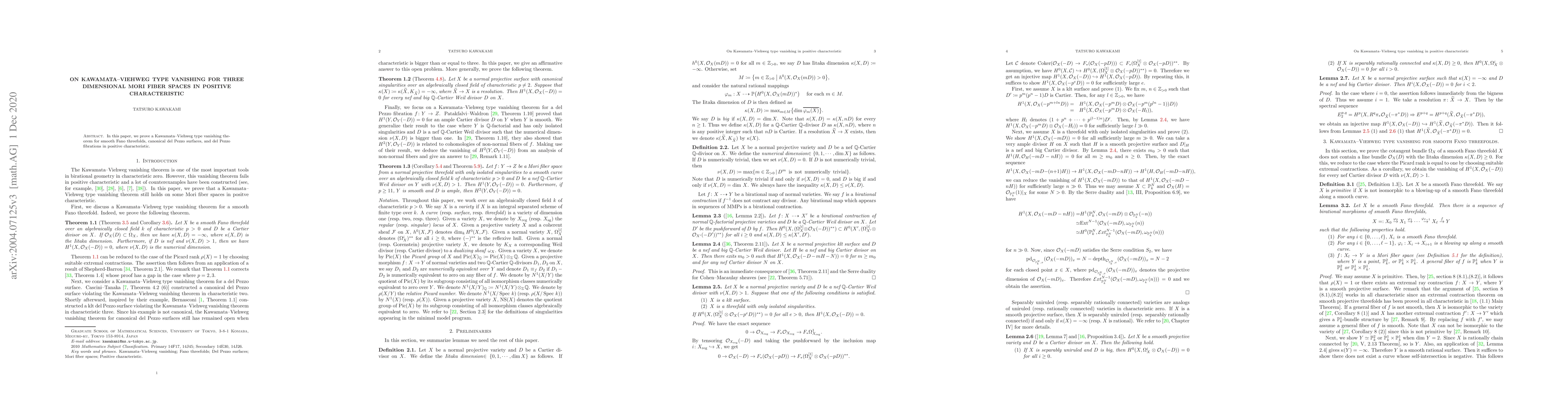 Summary: This paper establishes a Kawamata--Viehweg vanishing theorem for smooth Fano threefolds, canonical del Pezzo surfaces, and del Pezzo fibrations in positive characteristic. The results extend classical vanishing theorems to the context of positive characteristic.