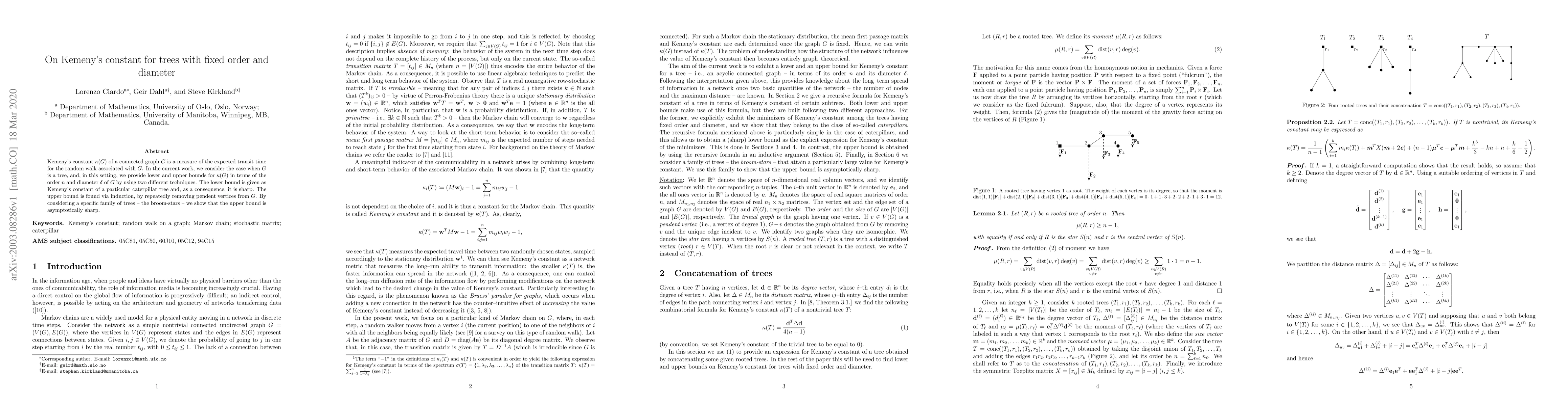 This paper investigates Kemeny's constant $\kappa(G)$ for trees, providing lower and upper bounds in terms of the tree's order and diameter. The lower bound is derived from a specific caterpillar tree, while the upper bound is established through inductive removal of pendent vertices, with asymptotic sharpness demonstrated for broom-star trees.
