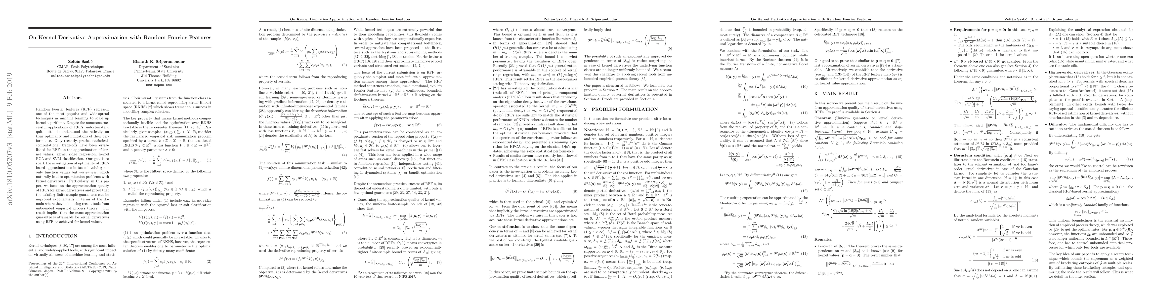 This paper investigates the optimality of Random Fourier Features (RFF) for approximating kernel derivatives, demonstrating that existing finite-sample guarantees can be exponentially improved using tools from empirical process theory. The findings suggest that RFFs can achieve the same approximation quality for kernel derivatives as they do for kernel values.