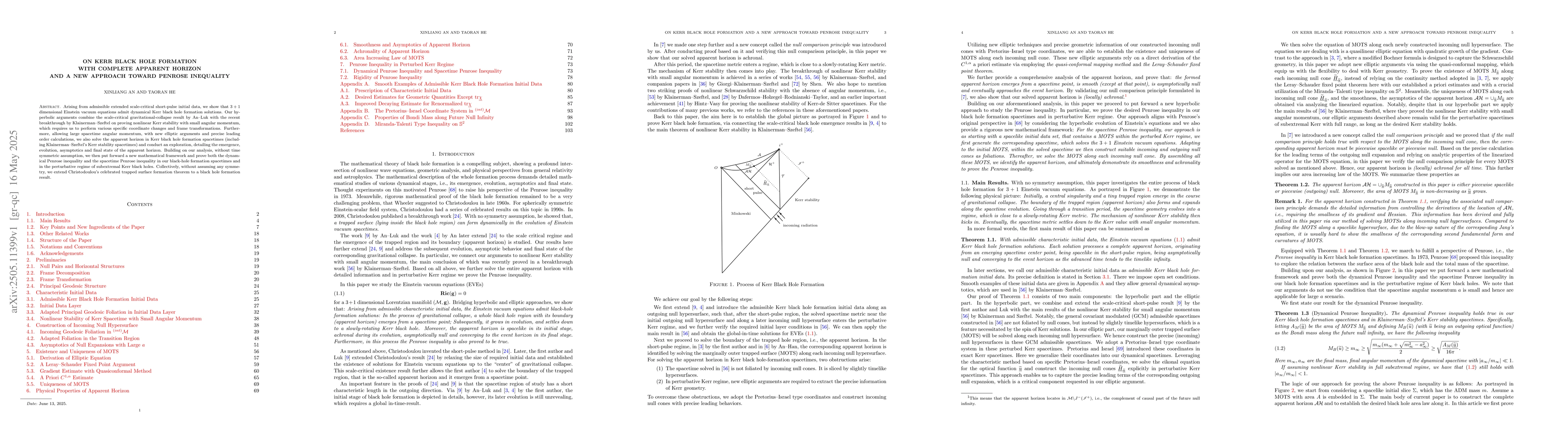 The research utilizes admissible extended scale-critical short-pulse initial data, combining scale-critical gravitational-collapse results by An--Luk with Klainerman--Szeftel's nonlinear Kerr stability proof. It involves hyperbolic arguments, specific coordinate changes, frame transformations, and new elliptic arguments with precise leading order calculations.