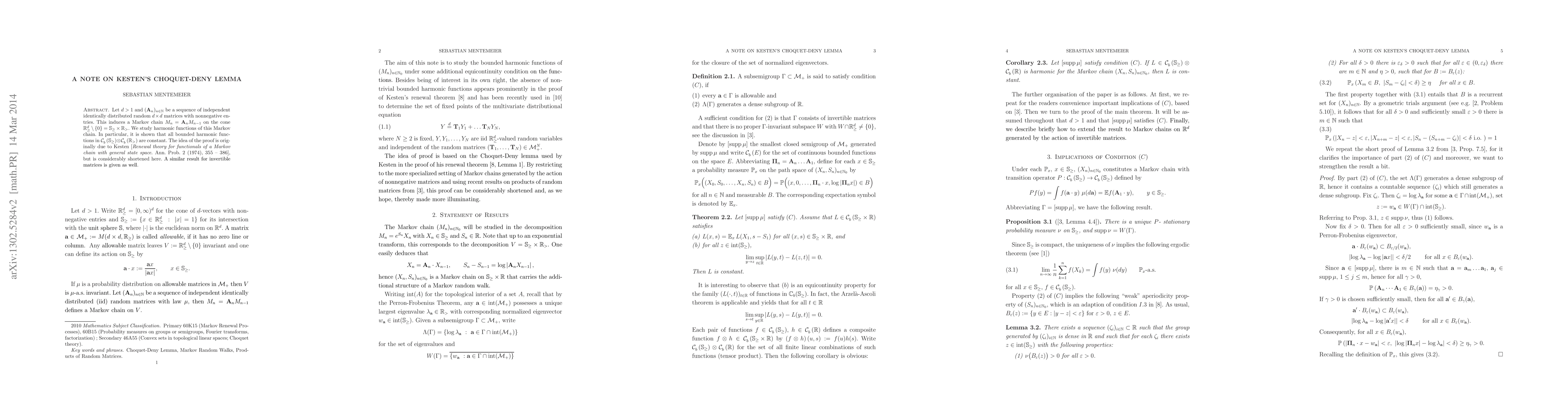 Let $d >1$ and $(A_n)_{n \ge 1}$ be a sequence of independent identically distributed random matrices with nonnegative entries and no zero column. This induces a Markov chain $M_n = A_n M_{n-1}$ on the cone of d-vectors with nonnegative entries. We study harmonic functions of this Markov chain. Considering a polar decomposition $M_n = X_n \exp(S_n)$, where $X_n$ is a vector of unit length, and $S_n$ a real valued random variable, it is in particular shown that all "compound" harmonic functions $L(x,s)=f(x)g(s)$ are constant. The idea of the proof is originally due to Kesten [Renewal theory for functionals of a Markov chain with general state space, Ann. Prob. 2 (1974), 355 - 386], but is considerably shortened here. A similar result for invertible matrices is given as well.