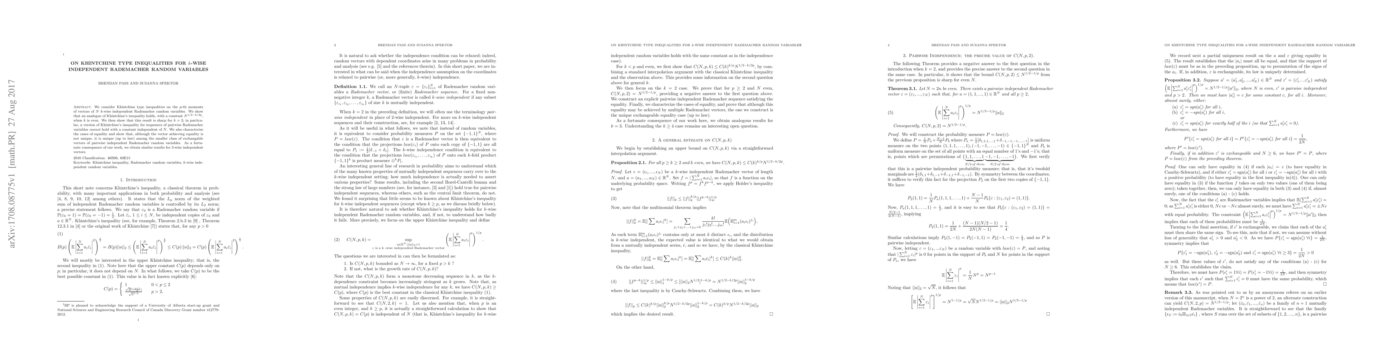 Researchers prove a variant of Khintchine's inequality for $k$-wise independent Rademacher random variables, with a sharp bound that depends on $N$, $k$, and $p$, and also show that equality occurs when the variables are pairwise independent.