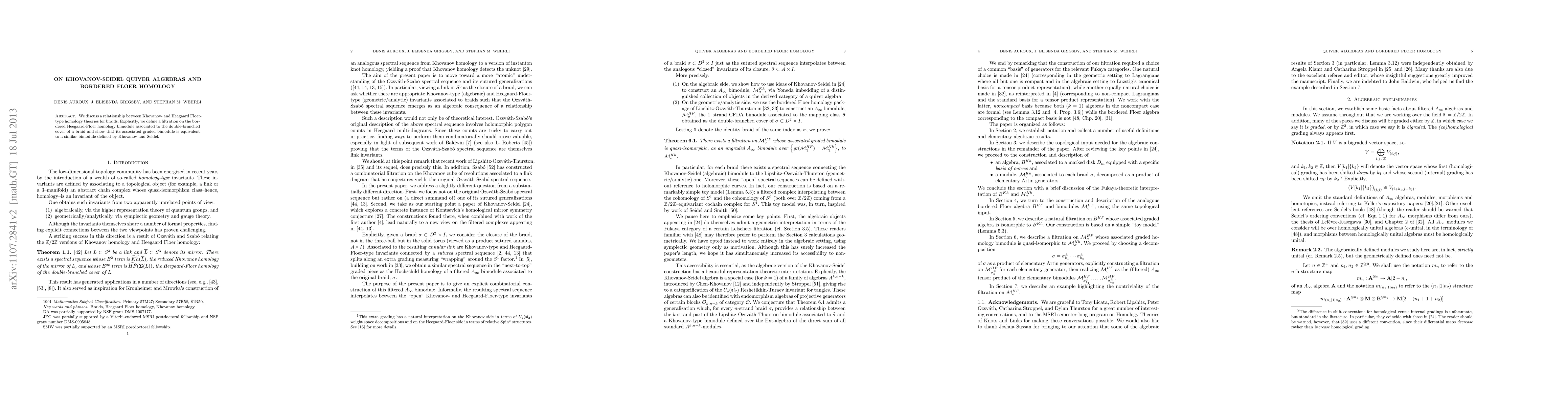 We discuss a relationship between Khovanov- and Heegaard Floer-type homology theories for braids. Explicitly, we define a filtration on the bordered Heegaard-Floer homology bimodule associated to the double-branched cover of a braid and show that its associated graded bimodule is equivalent to a similar bimodule defined by Khovanov and Seidel.