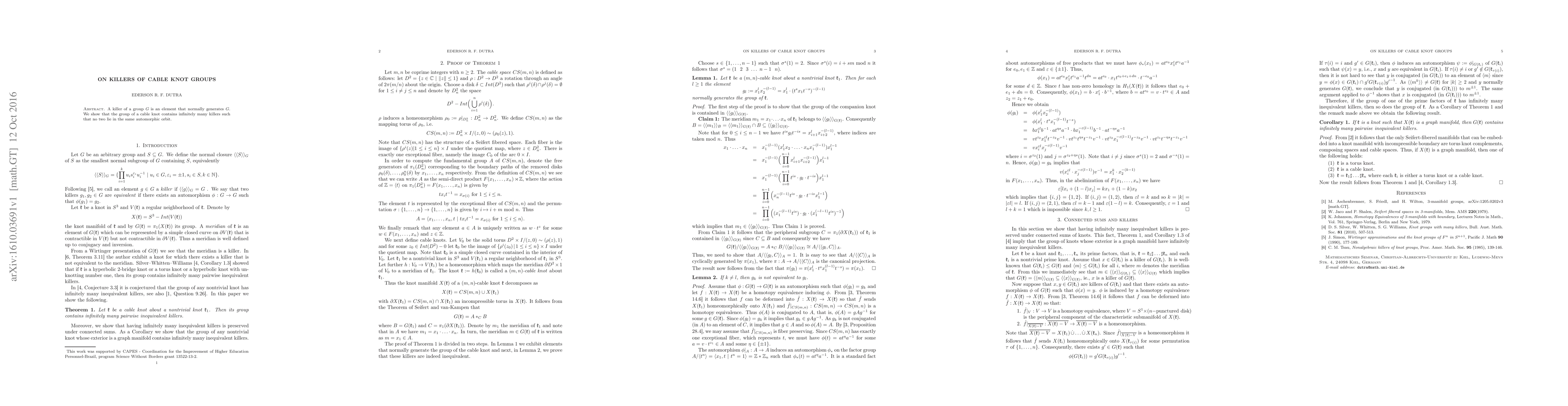 A killer of a group Gis an element that normally generates G. We show that the group of a cable knot contains infinitely many killers such that no two lie in the same automorphic orbit.