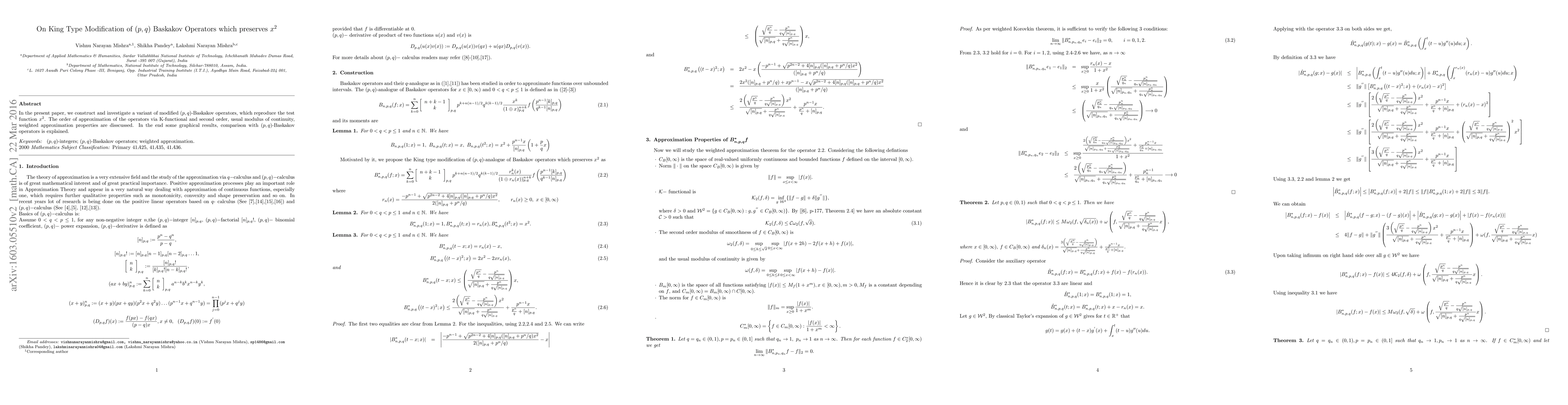 In the present paper, we construct and investigate a variant of modified $(p,q)$-Baskakov operators, which reproduce the test function $x^2$. The order of approximation of the operators via K-functional and second order, usual modulus of continuity, weighted approximation properties are disscussed. In the end some graphical results, comparison with $(p,q)$-Baskakov operators is explained.