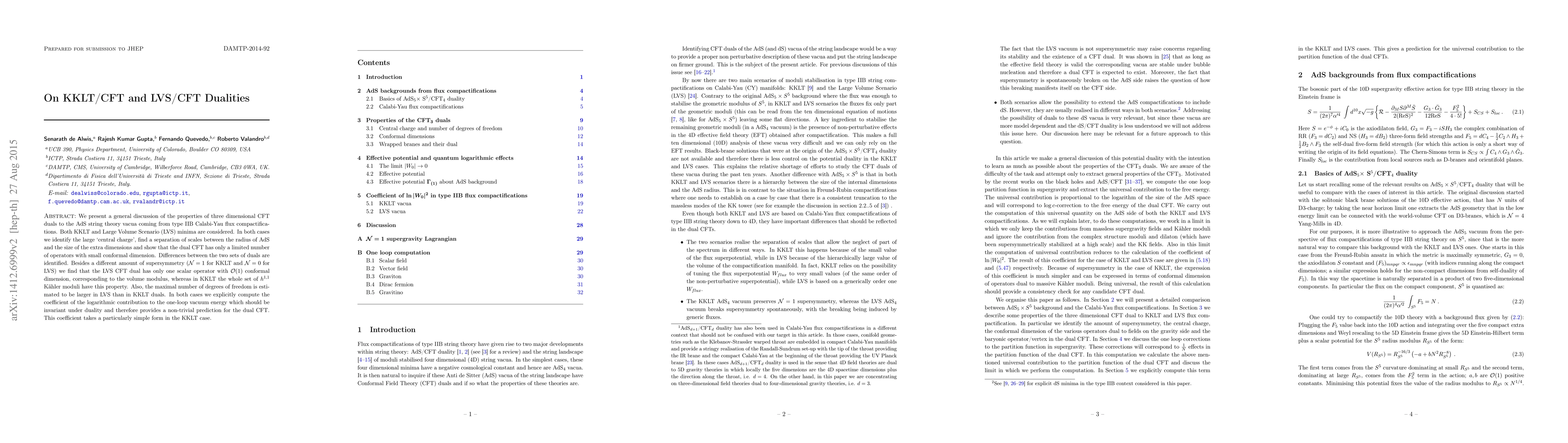 This paper explores the properties of three-dimensional CFT duals to AdS vacua from type IIB Calabi-Yau flux compactifications, comparing KKLT and LVS scenarios. It identifies key differences, including the amount of supersymmetry and the number of operators with small conformal dimensions, and computes a duality-invariant logarithmic contribution coefficient.