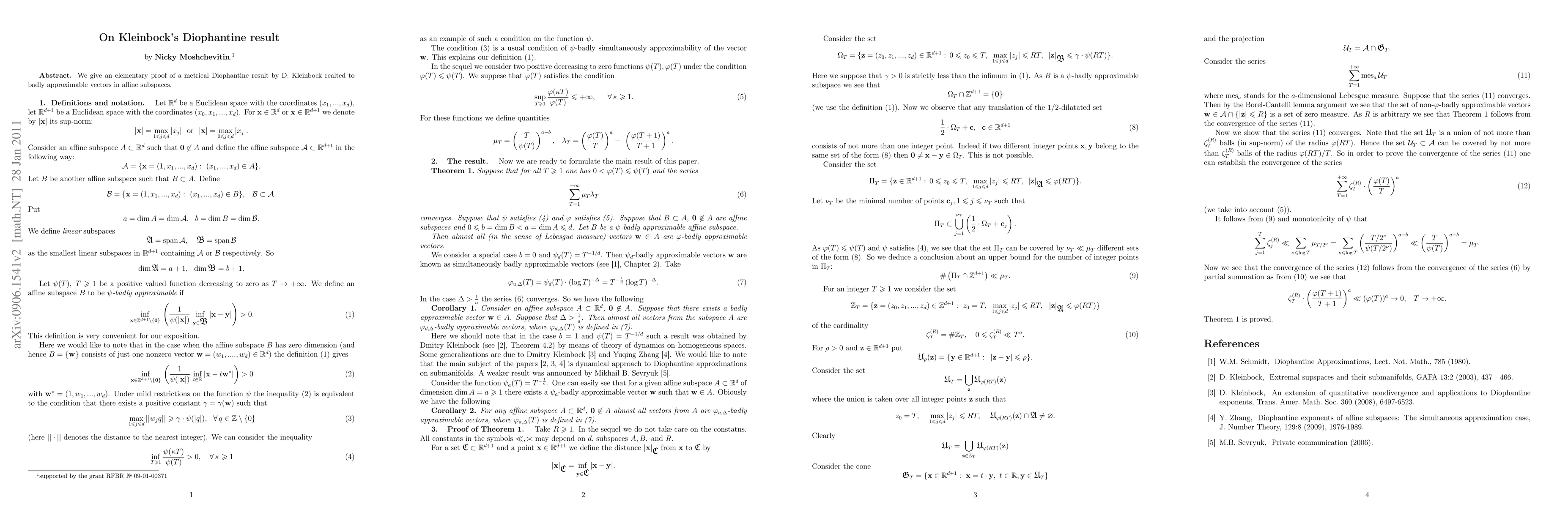 We give an elementary proof of a recent metrical Diophantine result by D. Kleinbock related to badly approximable vectors in affine subspaces.