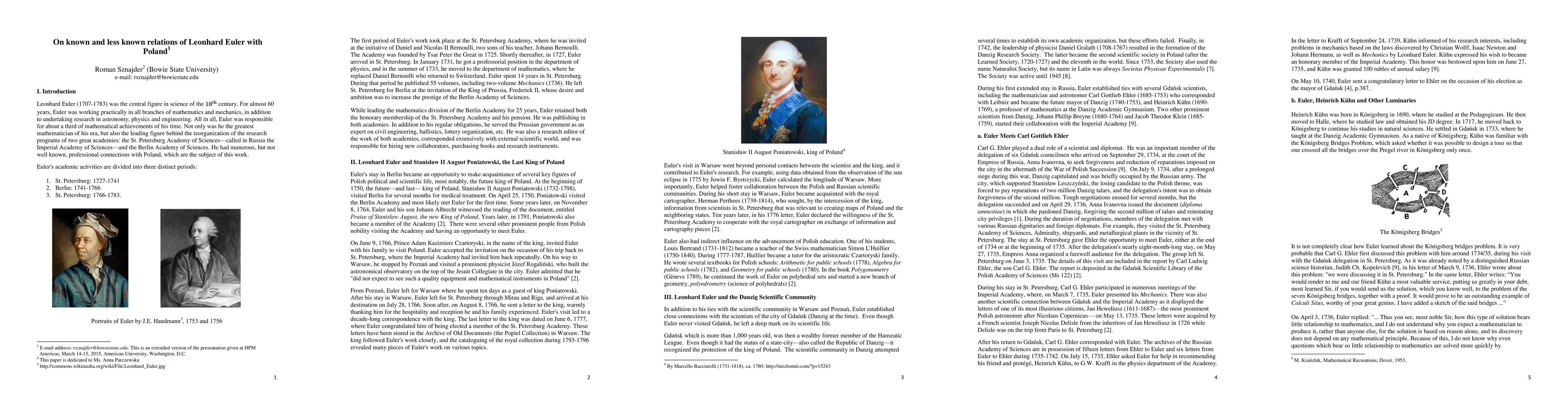 This paper explores lesser-known connections between Leonhard Euler and Polish scientists, particularly those from Gda\'nsk (formerly Danzig), highlighting Euler's interactions and contributions that have not been widely recognized. It also notes the origin of the K\"onigsberg Bridges Problem in Gda\'nsk, marking the start of graph theory and topology.