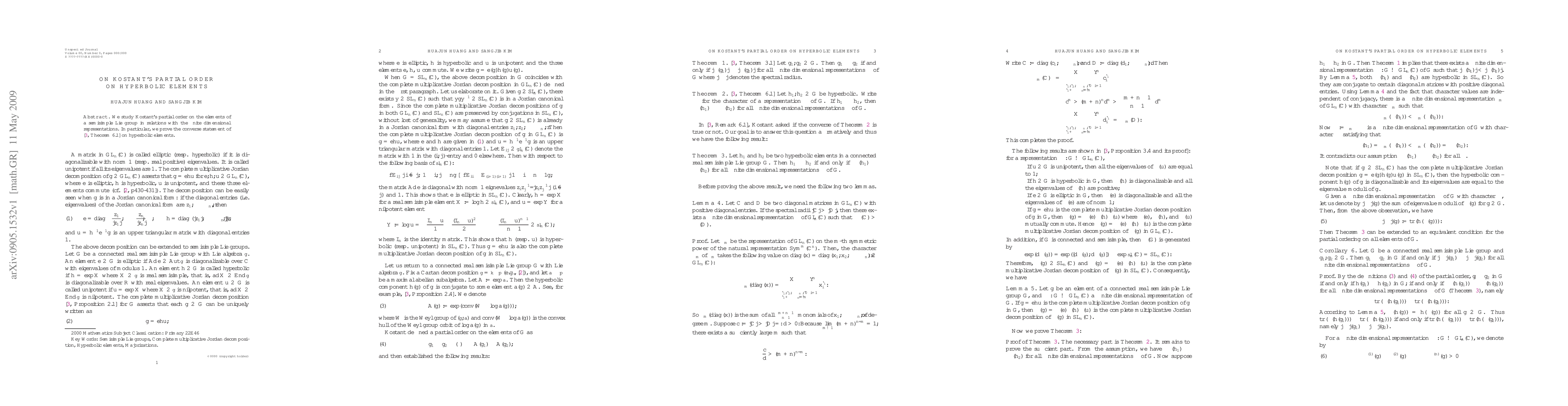 We study Kostant's partial order on the elements of a semisimple Lie group in relations with the finite dimensional representations. In particular, we prove the converse statement of [3, Theorem 6.1] on hyperbolic elements.