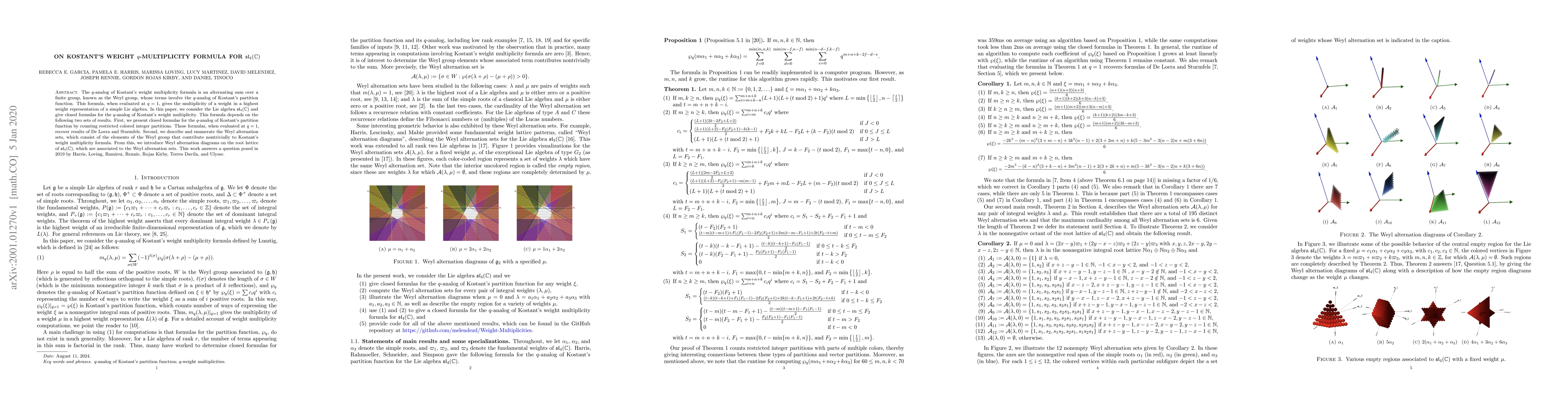 The $q$-analog of Kostant's weight multiplicity formula is an alternating sum over a finite group, known as the Weyl group, whose terms involve the $q$-analog of Kostant's partition function. This formula, when evaluated at $q=1$, gives the multiplicity of a weight in a highest weight representation of a simple Lie algebra. In this paper, we consider the Lie algebra $\mathfrak{sl}_4(\mathbb{C})$ and give closed formulas for the $q$-analog of Kostant's weight multiplicity. This formula depends on the following two sets of results. First, we present closed formulas for the $q$-analog of Kostant's partition function by counting restricted colored integer partitions. These formulas, when evaluated at $q=1$, recover results of De Loera and Sturmfels. Second, we describe and enumerate the Weyl alternation sets, which consist of the elements of the Weyl group that contribute nontrivially to Kostant's weight multiplicity formula. From this, we introduce Weyl alternation diagrams on the root lattice of $\mathfrak{sl}_4(\mathbb{C})$, which are associated to the Weyl alternation sets. This work answers a question posed in 2019 by Harris, Loving, Ramirez, Rennie, Rojas Kirby, Torres Davila, and Ulysse.