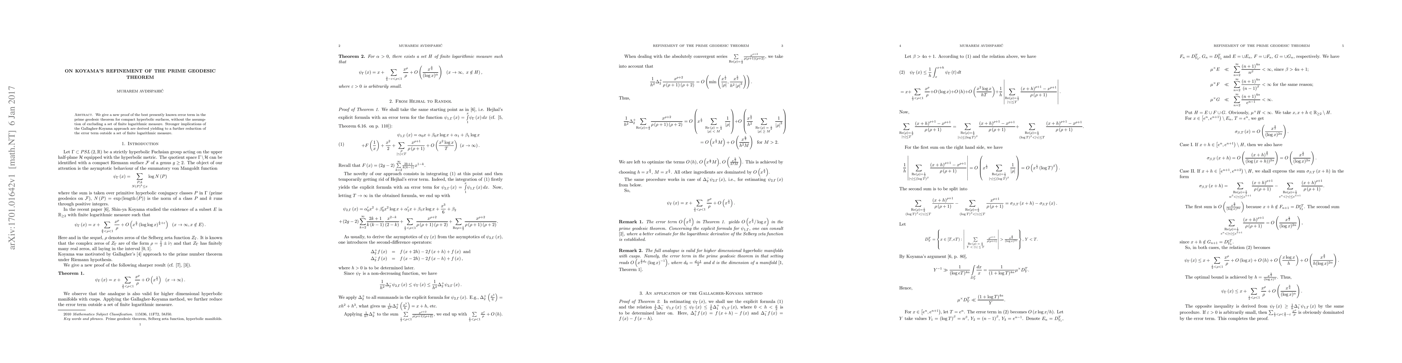 This paper presents a novel proof for the optimal error term in the prime geodesic theorem for compact Riemann surfaces, improving upon Koyama's earlier work without relying on excluding sets of finite logarithmic measure, and derives stronger implications from the Gallagher-Koyama approach to further reduce the error term.