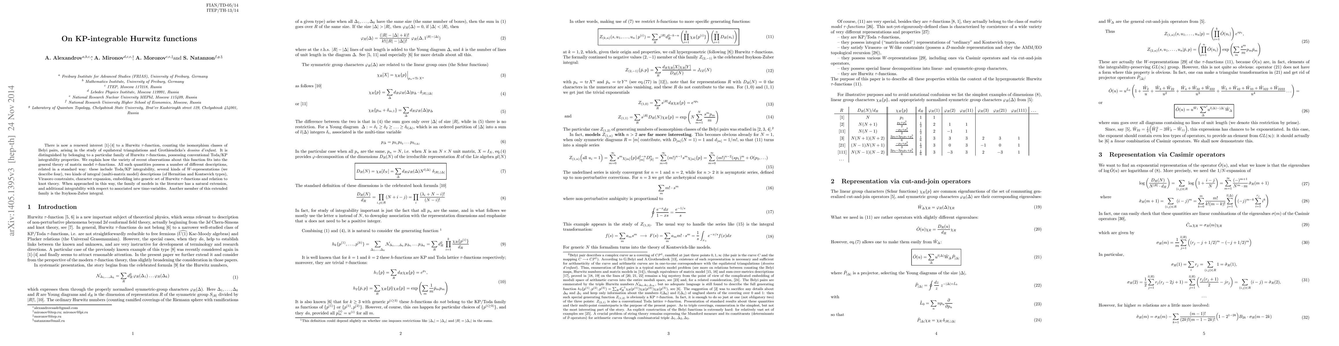 This paper explores the Hurwitz tau-function, which counts isomorphism classes of Belyi pairs, and its KP-integrable properties. It connects this function to matrix model tau-functions, detailing various representations, integral descriptions, and its relation to knot theory and additional integrability.