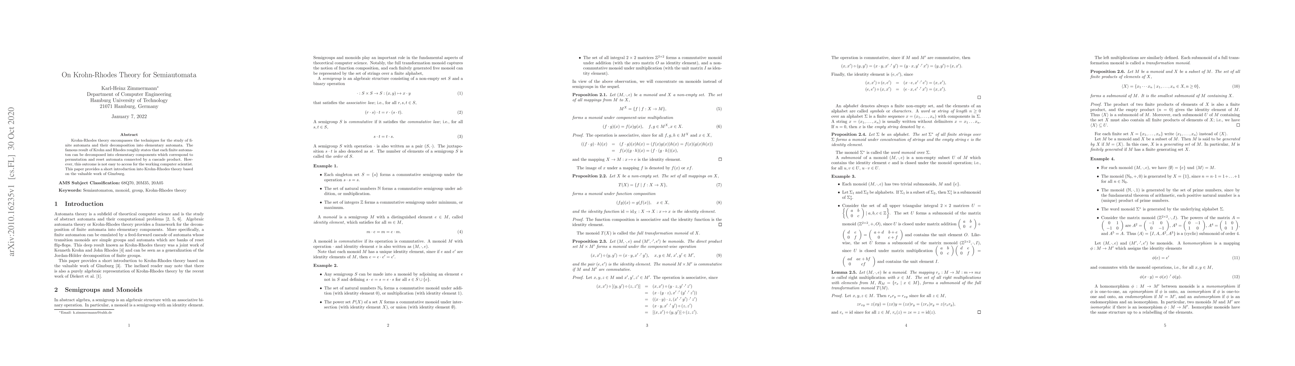 Krohn-Rhodes theory encompasses the techniques for the study of finite automata and their decomposition into elementary automata. The famous result of Krohn and Rhodes roughly states that each finite automaton can be decomposed into elementary components which correspond to permutation and reset automata connected by a cascade product. However, this outcome is not easy to access for the working computer scientist. This paper provides a short introduction into Krohn-Rhodes theory based on the valuable work of Ginzburg.
