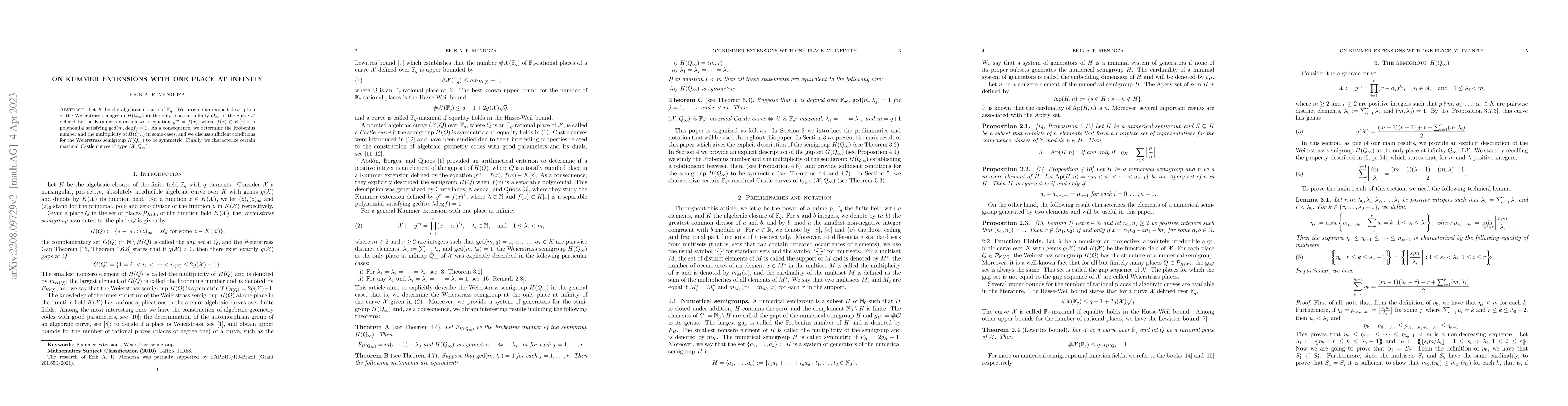 This paper provides an explicit description of the Weierstrass semigroup $H(Q_\infty)$ for Kummer extensions over finite fields, determining the Frobenius number and discussing conditions for symmetry. It also characterizes certain maximal Castle curves of type $(\mathcal{X}, Q_\infty)$.