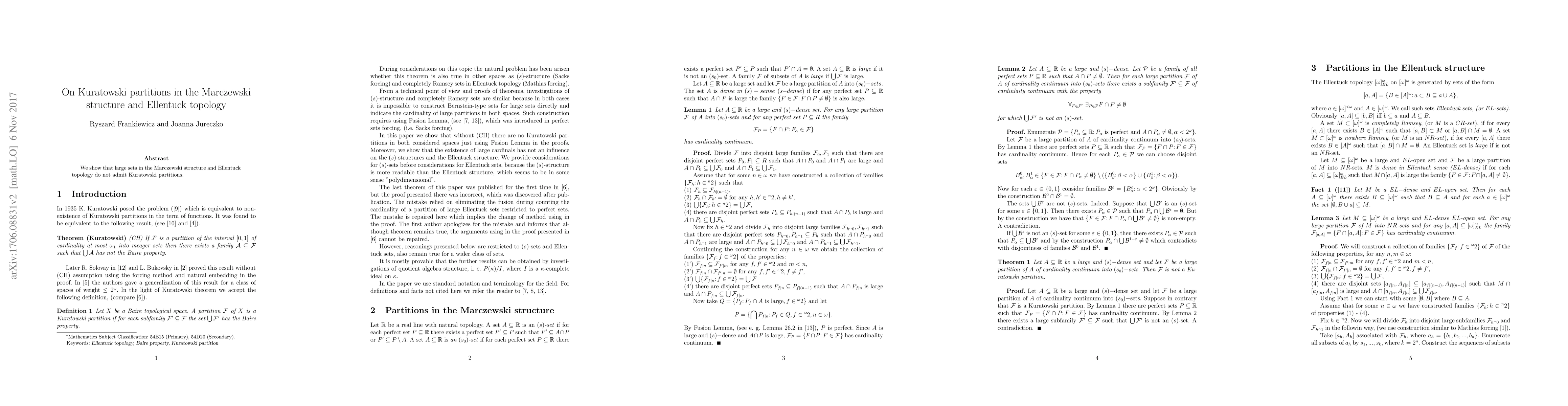 Summary: This paper demonstrates that large sets in Ellentuck topology, which are not nowhere Ramsey, cannot be partitioned according to Kuratowski's theorem. The same conclusion applies to sets arising from Sacks real forcing.