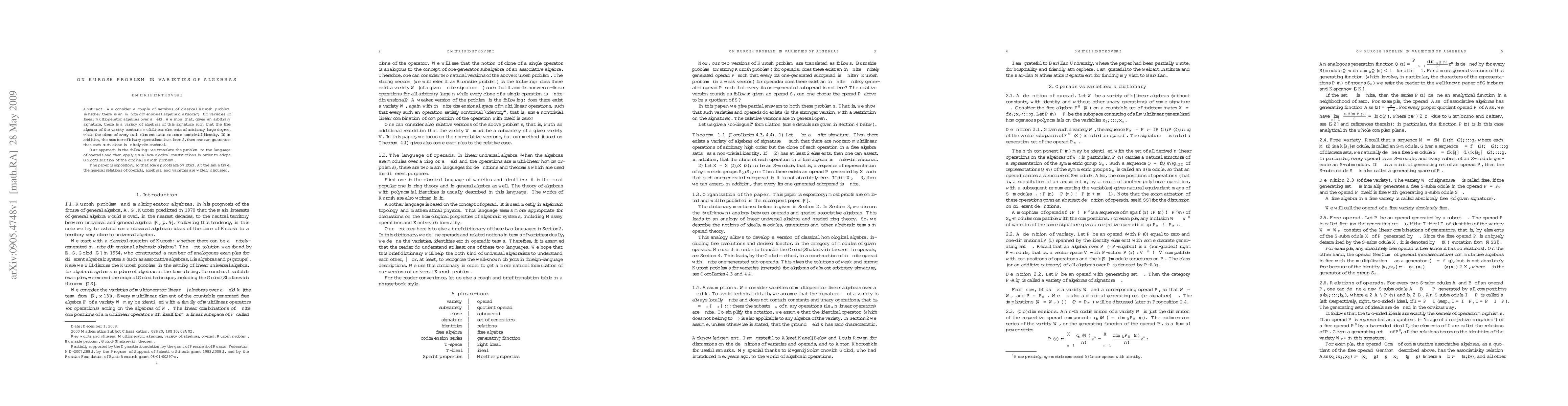 We consider a couple of versions of classical Kurosh problem (whether there is an infinite-dimensional algebraic algebra?) for varieties of linear multioperator algebras over a field. We show that, given an arbitrary signature, there is a variety of algebras of this signature such that the free algebra of the variety contains multilinear elements of arbitrary large degree, while the clone of every such element satisfies some nontrivial identity. If, in addition, the number of binary operations is at least 2, then one can guarantee that each such clone is finitely-dimensional. Our approach is the following: we translate the problem to the language of operads and then apply usual homological constructions, in order to adopt Golod's solution of the original Kurosh problem. The paper is expository, so that some proofs are omited. At the same time, the general relations of operads, algebras, and varieties are widely discussed.