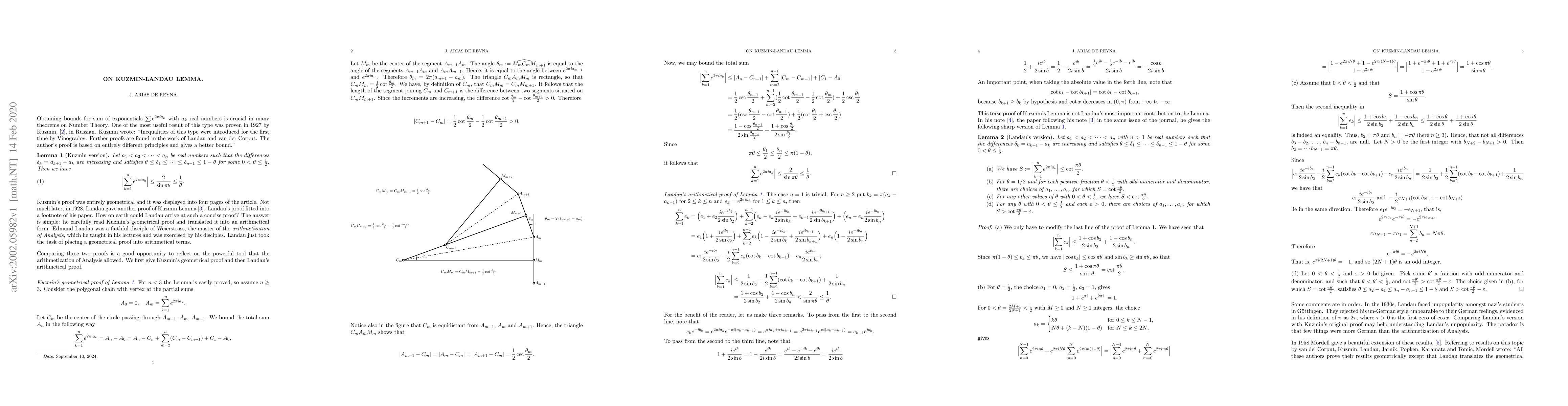 Landau's version of the Kuzmin-Landau Lemma provides a sharp bound on the sum of exponentials.