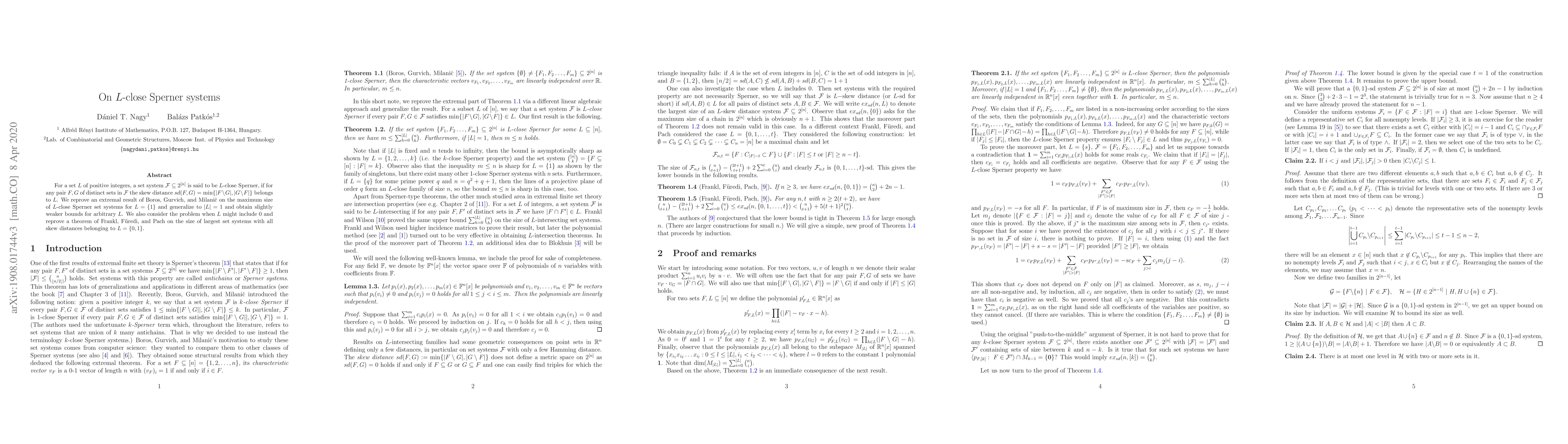 This paper reproves and generalizes the extremal results on the maximum size of $L$-close Sperner systems, where the skew distance between any two distinct sets must belong to a set $L$ of positive integers. It provides tighter bounds for $L=\{1\}$ and weaker bounds for arbitrary $L$, and also addresses cases where $L$ includes 0.