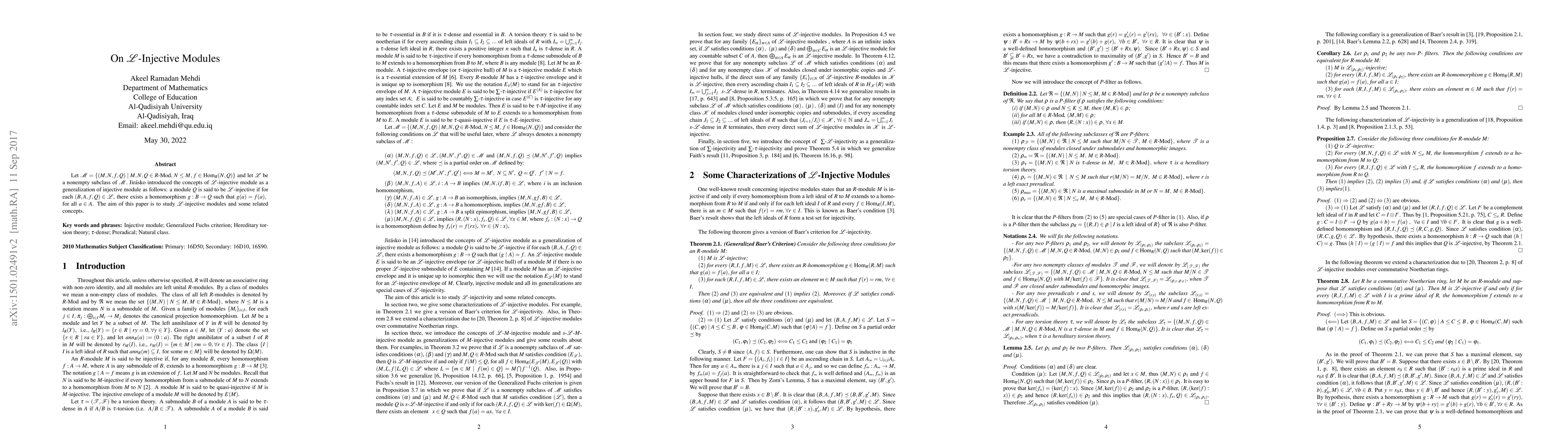 This paper explores L-injective modules, introduced by Jirásko as a generalization of injective modules, and investigates related concepts and properties. The study aims to deepen the understanding of these modules within the broader context of module theory.