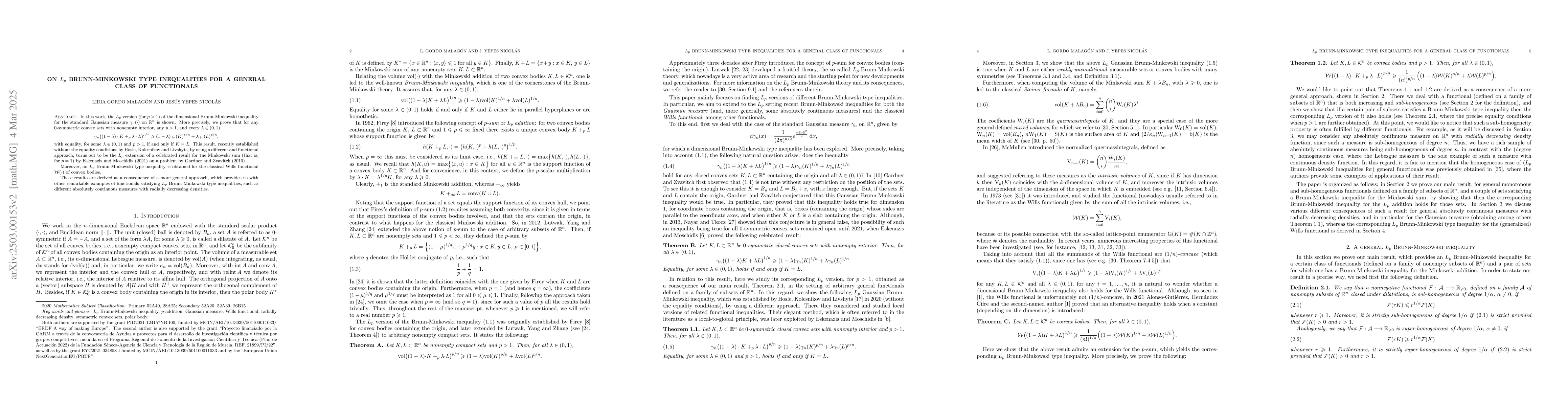 The work extends previous findings by Hosle, Kolesnikov, and Livshyts, and Eskenazis and Moschidis, by establishing a more general $L_p$ Brunn-Minkowski inequality for a broader class of functionals, including the Wills functional.