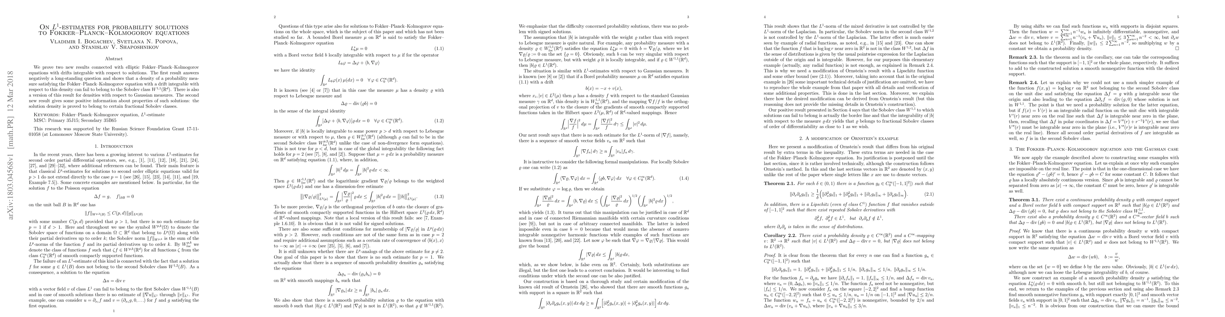 We prove two new results connected with elliptic Fokker-Planck-Kolmogorov equations with drifts integrable with respect to solutions. The first result answers negatively a long-standing question and shows that a density of a probability measure satisfying the Fokker-Planck-Kolmogorov equation with a drift integrable with respect to this density can fail to belong to the Sobolev class~$W^{1,1}(\mathbb{R}^d)$. There is also a version of this result for densities with respect to Gaussian measures. The second new result gives some positive information about properties of such solutions: the solution density is proved to belong to certain fractional Sobolev classes.