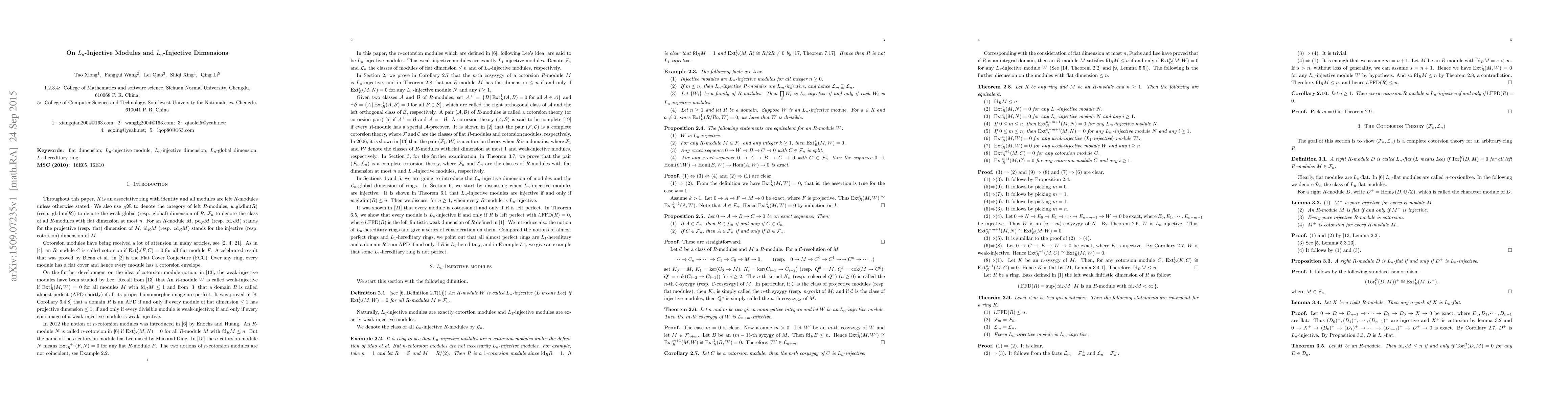 This paper defines $L_{n}$-injective modules, establishes that ($\mathcal{F}_{n}$,$\mathcal{L}_{n}$) forms a complete hereditary cotorsion theory, and introduces $L_{n}$-injective dimensions of modules and $L_n$-global dimensions of rings, with additional properties and applications for specific types of rings.
