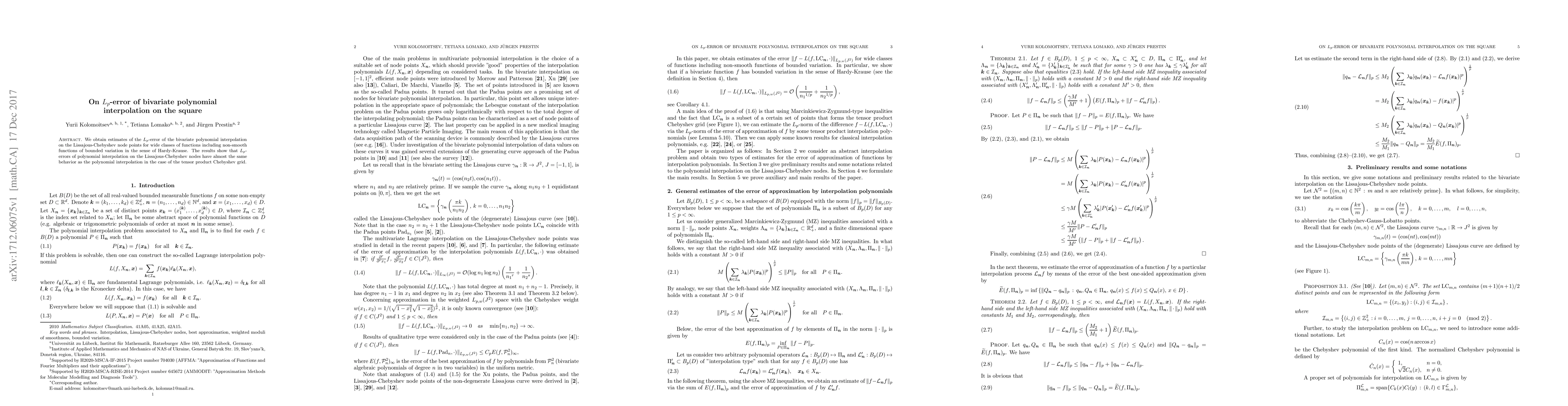 This paper provides estimates for the $L_p$-error in bivariate polynomial interpolation at Lissajous-Chebyshev nodes, demonstrating similar error behavior compared to tensor product Chebyshev grids, even for non-smooth functions of bounded variation.