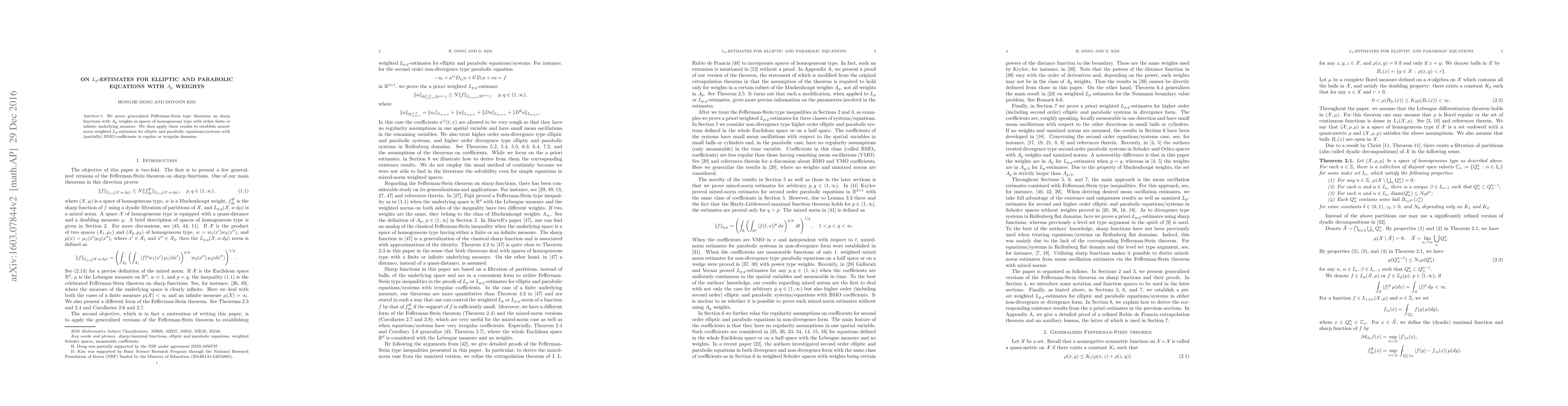 This paper proves generalized Fefferman-Stein theorems for functions with $A_p$ weights in spaces of homogeneous type, and applies these results to derive mixed-norm weighted $L_p$-estimates for elliptic and parabolic equations with BMO coefficients in various domains.
