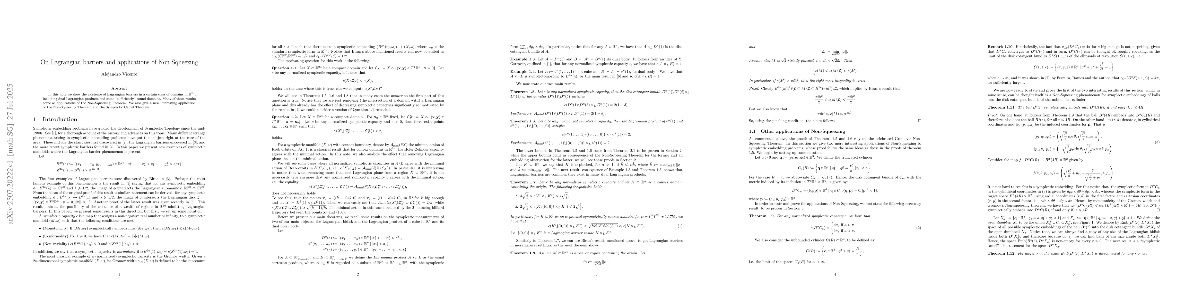 In this note we show the existence of Lagrangian barriers in a certain class of domains in $\mathbb{R}^{2n}$, including dual Lagrangian products and some ``sufficiently" round domains. Many of these results come as applications of the Non-Squeezing Theorem. We also give a new interesting application of the Non-Squeezing Theorem and the Symplectic Camel Theorem.