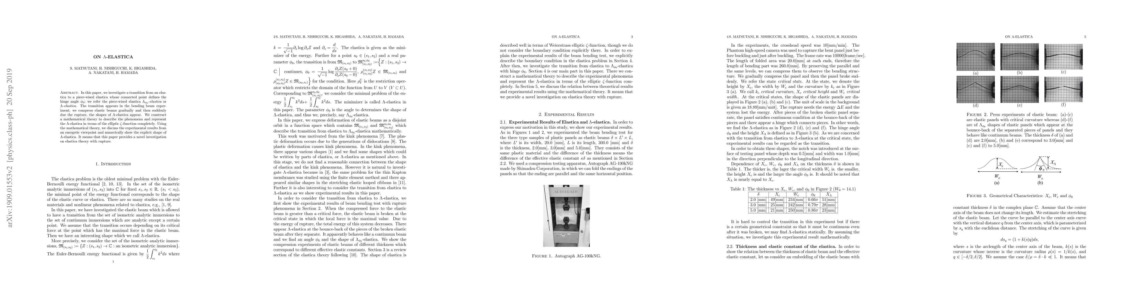 In this paper, we investigate a transition from an elastica to a piece-wised elastica whose connected point defines the hinge angle $\phi_0$; we refer the piece-wised elastica $\Lambda_{\phi_0}$-elastica or $\Lambda$-elastica. The transition appears in the bending beam experiment; we compress elastic beams gradually and then suddenly due the rupture, the shapes of $\Lambda$-elastica appear. We construct a mathematical theory to describe the phenomena and represent the $\Lambda$-elastica in terms of the elliptic $\zeta$-function completely. Using the mathematical theory, we discuss the experimental results from an energetic viewpoint and numerically show the explicit shape of $\Lambda$-elastica. It means that this paper provides a novel investigation on elastica theory with rupture.