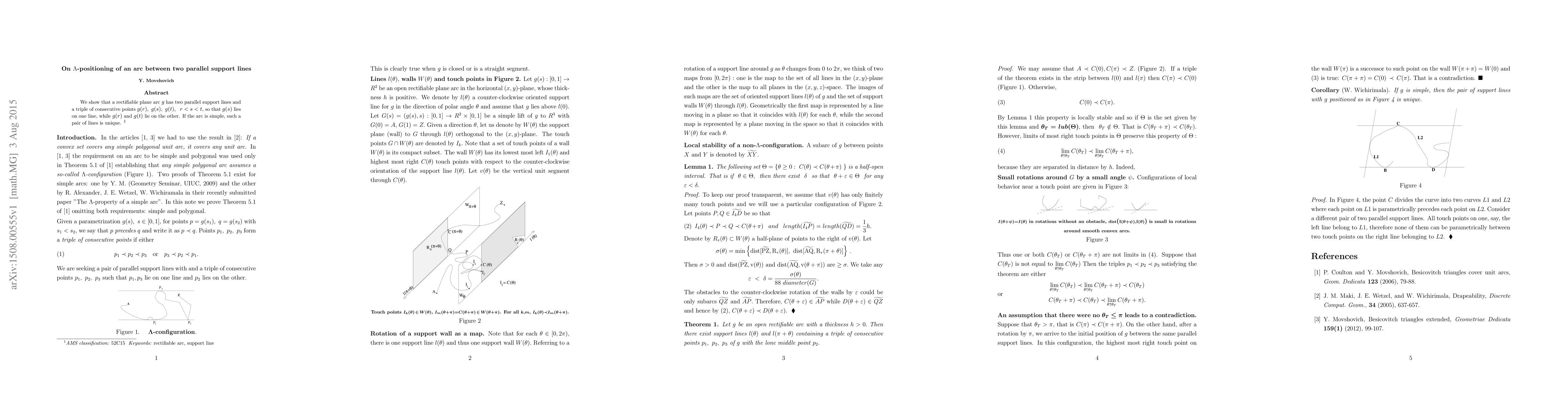 We show that a rectifiable plane arc g has two parallel support lines and a