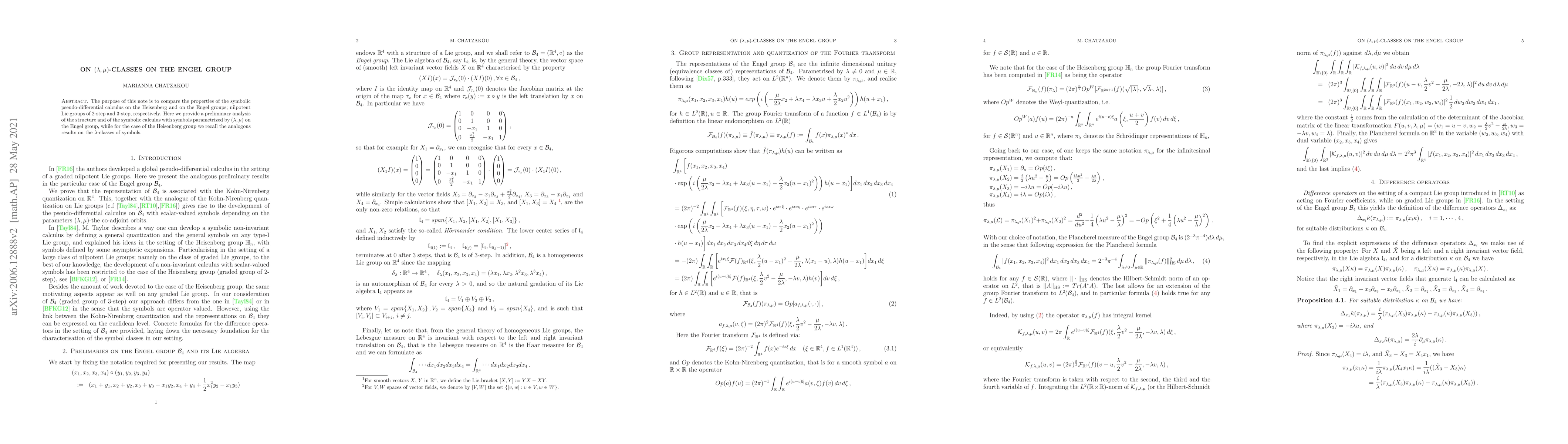 The purpose of this note is to compare the properties of the symbolic pseudo-differential calculus on the Heisenberg and on the Engel groups; nilpotent Lie groups of 2-step and 3-step, respectively. Here we provide a preliminary analysis of the structure and of the symbolic calculus with symbols parametrized by $(\lambda,\mu)$ on the Engel group, while for the case of the Heisenberg group we recall the analogous results on the $\lambda$-classes of symbols.
