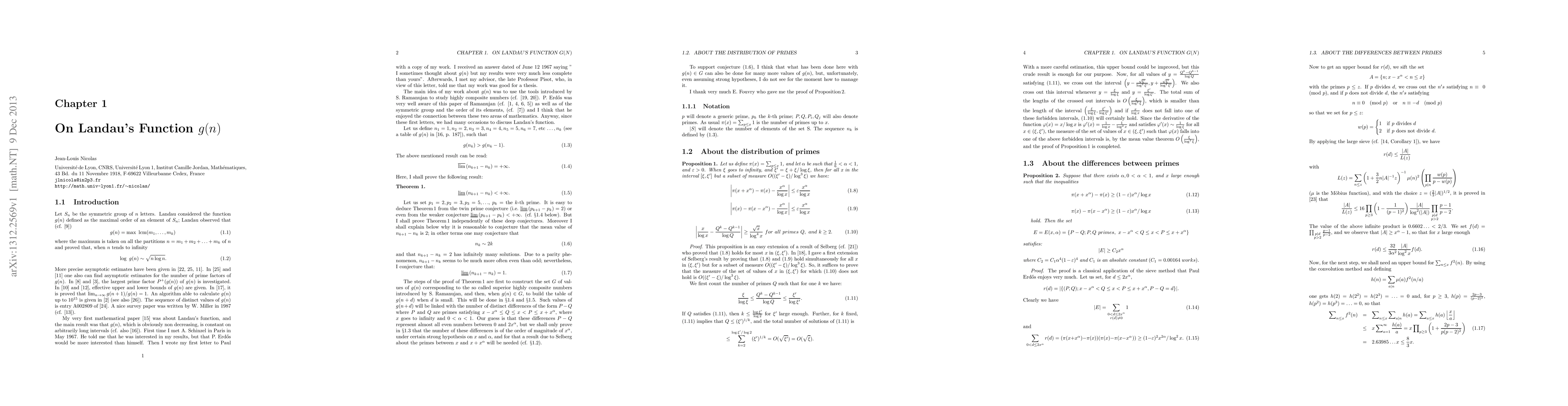 Let $S_n$ be the symmetric group of $n$ letters; Landau considered the function $g(n)$ defined as the maximal order of an element of $S_n$. This function is non-decreasing. Let us define the sequence $n_1=1, n_2=2, n_3=3, n_4=4,n_5=5,n_6=7, ...,n_k$ such that $g(n_k) > g(n_k -1)$. It is known that $lim sup n_{k+1}-n_k =infinity$. Here it is shown that $lim inf n_{k+1}-n_k is finite.