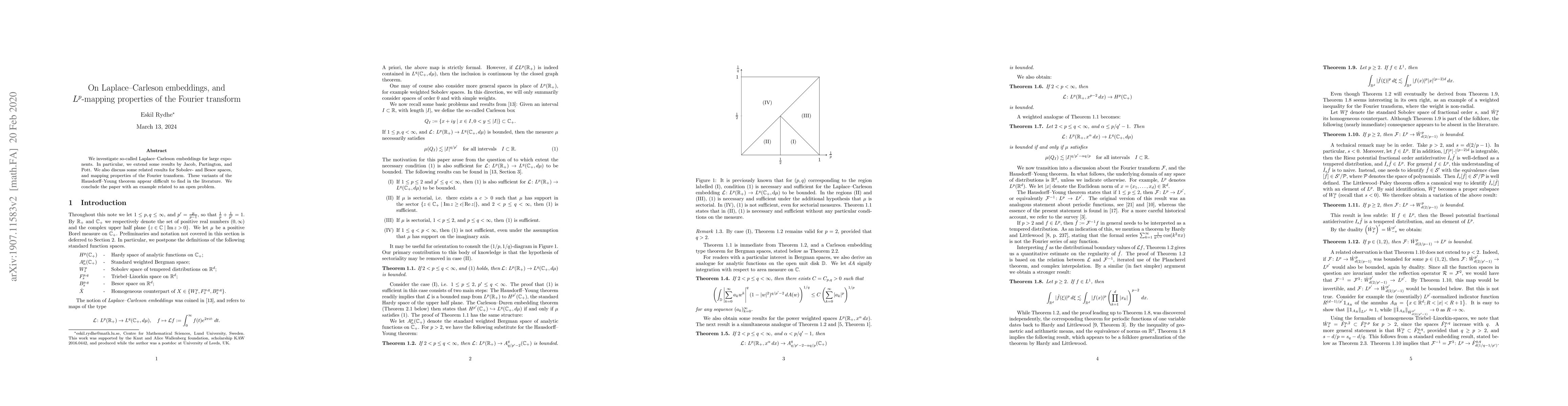 Summary: This paper extends results on Laplace--Carleson embeddings for large exponents and explores related properties in Sobolev- and Besov spaces, alongside mapping properties of the Fourier transform, providing insights that are not widely documented in existing literature. An example is also presented to relate findings to an open problem.