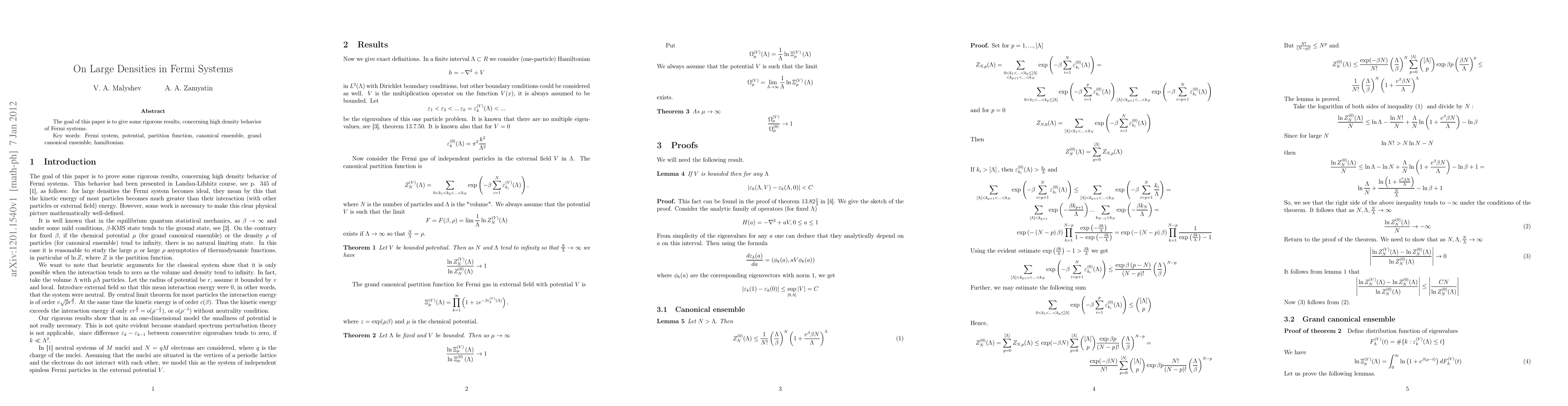 The goal of this paper is to give some rigorous results, concerning high density behavior of Fermi systems.