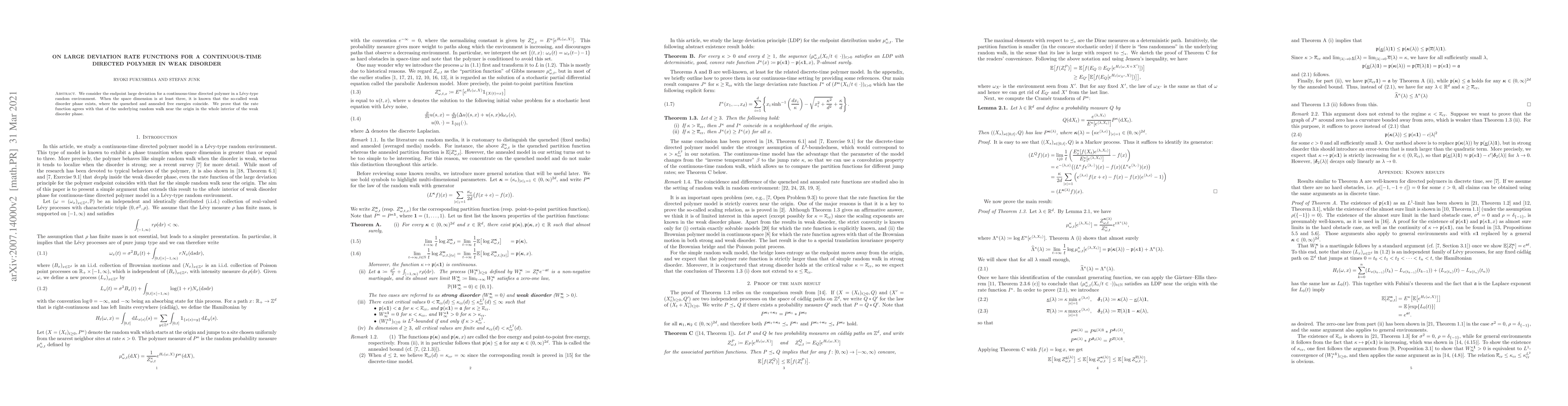 We show that the endpoint large deviation rate function for a continuous-time directed polymer agrees with the rate function of the underlying random walk near the origin in the whole weak disorder phase.
