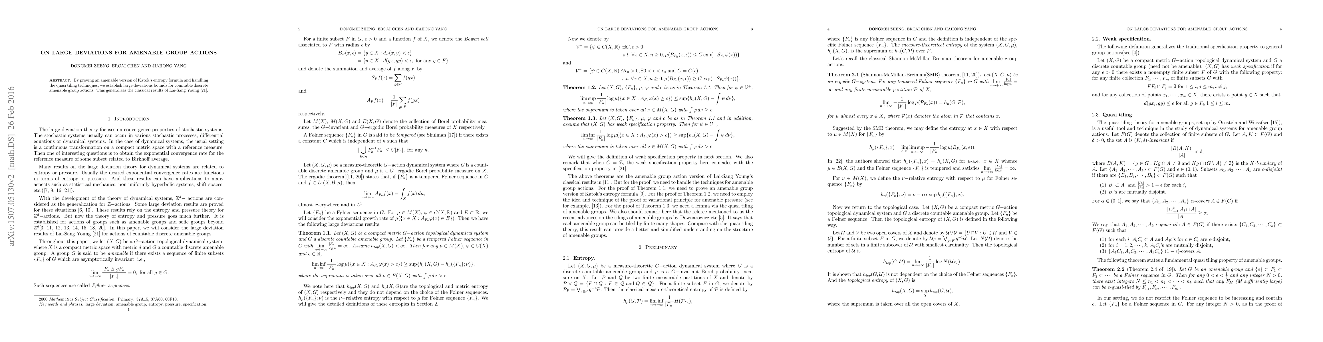 Summary: This paper proves an amenable version of Katok's entropy formula and applies quasi tiling techniques to establish large deviations bounds for countable discrete amenable group actions, thereby generalizing Lai-Sang Young's classical results.